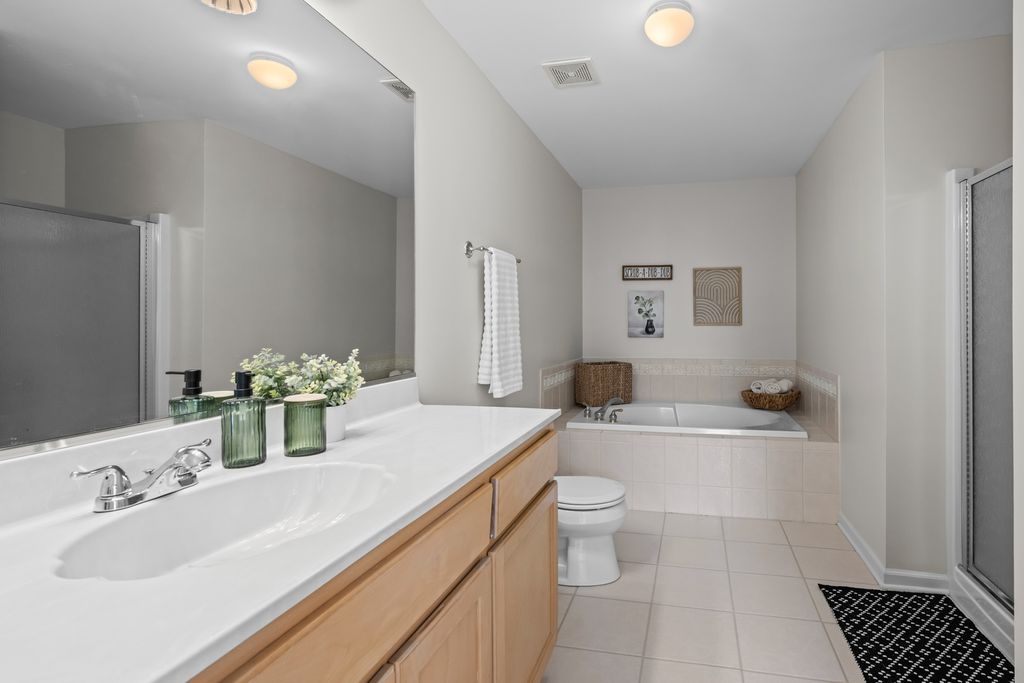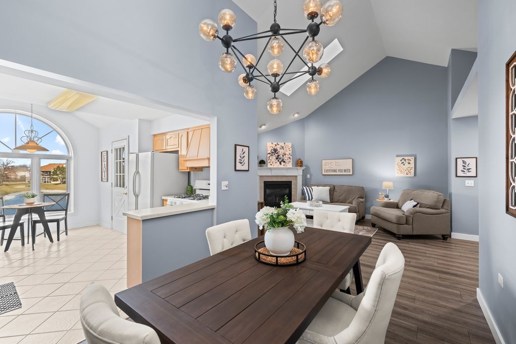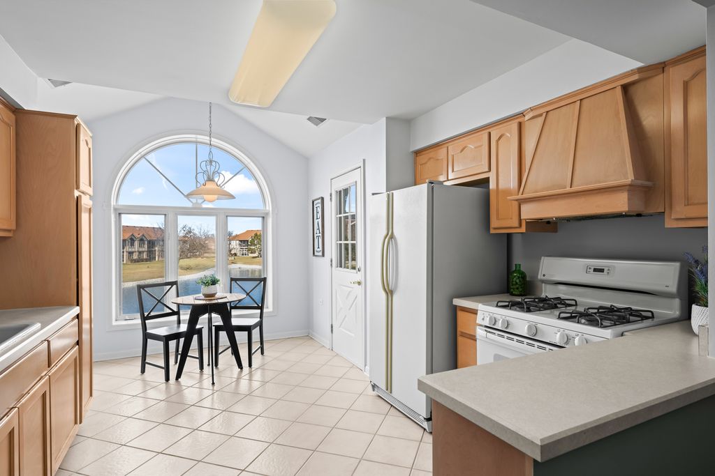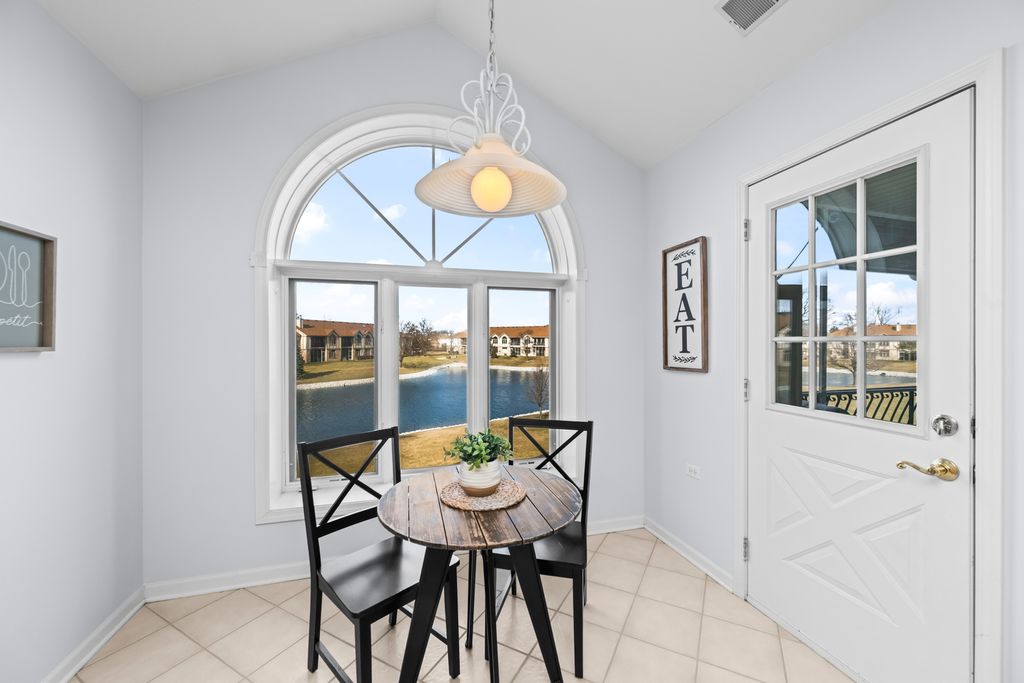 Light-filled and inviting condo in the highly sought-after The Pines subdivision of Tinley Park, a well-maintained 55+ adult community. (Note: The Pines allows up to one fifth of the units to be owned by individuals aged 18-54. This unit is available to an under 55 buyer!) Nestled in a quiet, close-knit community, this peaceful home offers serene pond views and a welcoming atmosphere throughout. Step inside to a spacious, open-concept living and dining area featuring vaulted ceilings and a gas fireplace-perfect for both everyday comfort and entertaining. The thoughtfully designed kitchen provides generous counter space and a tranquil eat-in area overlooking the pond, while the separate dining room easily accommodates dinner parties and gatherings. Enjoy outdoor relaxation on the large screened-in balcony, complete with an additional walk-in storage room. The sun-drenched primary suite is a true retreat, offering a large walk-in closet and a spa-like ensuite bath with abundant counter space, a separate shower, and a luxurious whirlpool tub. A spacious second bedroom with ample closet space and an additional full bath ensures comfort for guests. Recent updates include brand-new carpeting in both bedrooms and fresh paint throughout the kitchen, bedrooms, and bathrooms in soothing, neutral tones. Additional highlights include an attached one-car garage with extra storage, driveway space, and plentiful guest parking just steps away. This quiet, safe, and beautifully kept community offers the perfect blend of comfort, convenience, and low-maintenance living. Home is part of an Estate and being offered AS-IS.