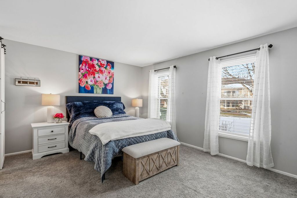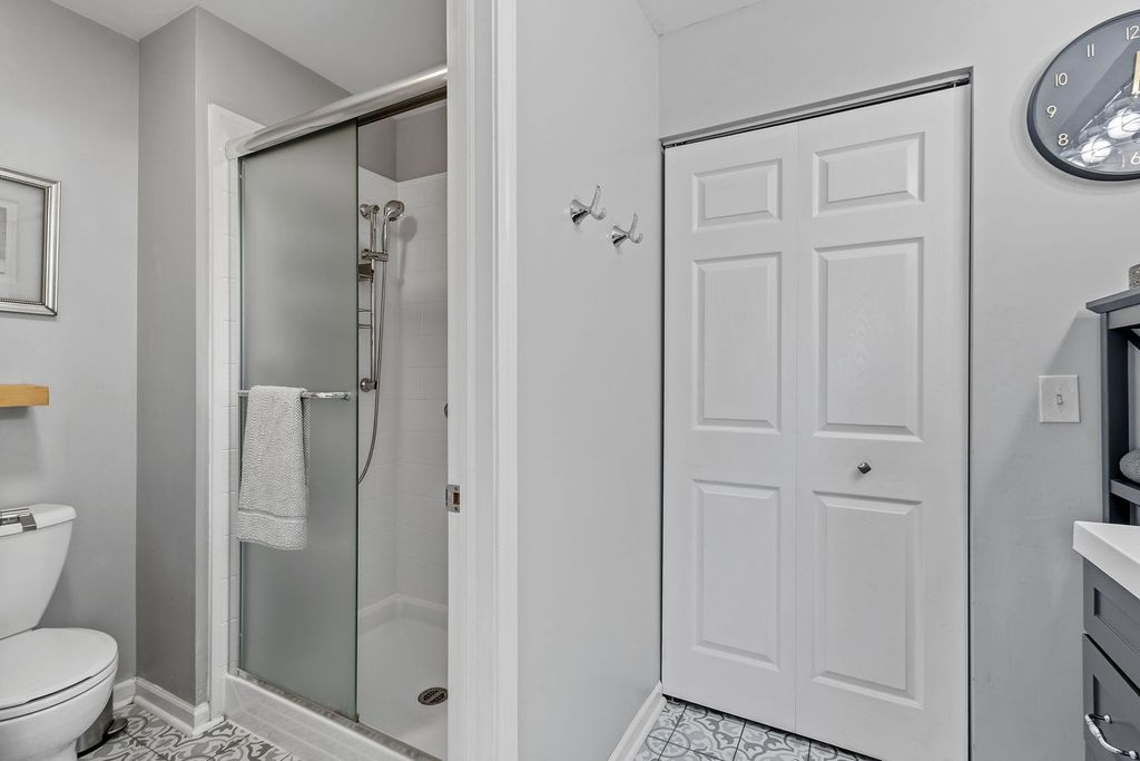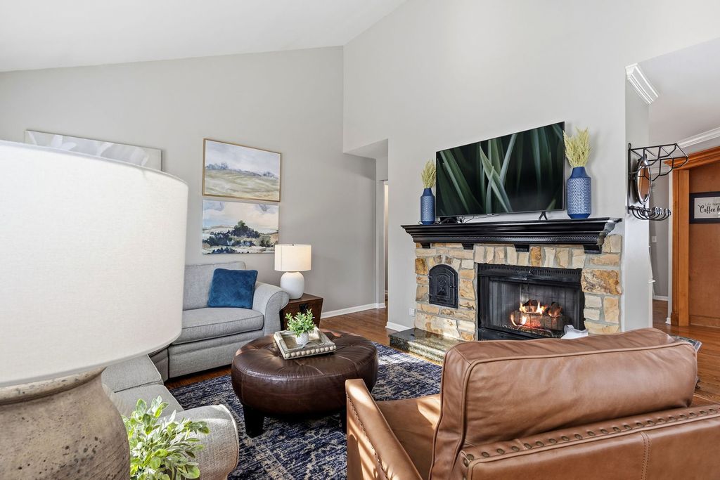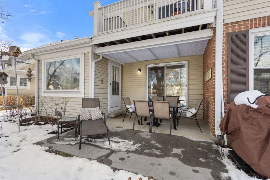 MULTIPLE OFFERS RECEIVED. ALL OFFERS DUE BY 8 PM, JANUARY 6. Rarely available Essex model Ranch, end-unit, backing to park with private entrance, attached garage and new extended patio. This beautifully updated home features a professionally remodeled eat-in kitchen with custom cabinetry, detailed trim work, quartz countertop and backsplash, and new stainless steel appliances. Rich stained oak floors, enhanced by custom trim and crown molding, create a warm and elegant feel throughout. The inviting living room showcases a cozy fireplace and vaulted ceiling, while the generously sized dining room brings in beautiful natural light through the sliding glass doors that open to the extended patio - perfect for everyday living or entertaining. The spacious primary suite offers a beautifully updated private bath, dressing vanity, and large walk-in closet with custom organizers. Enjoy the convenience of first-floor living with minimal steps, in-unit laundry, and direct access to the attached garage. Located in the desirable Rob Roy Golf Course community, residents enjoy resort-style amenities including a pool, tennis courts, party room, and more- all just steps from this beautiful home. A truly special opportunity to enjoy comfort, style, and scenic views in a sought-after setting. New Windows 2024.