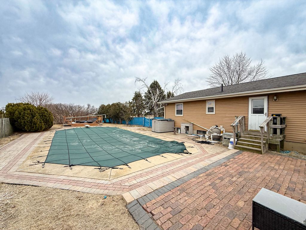 Welcome to country living. This ranch home offers many features you're looking for. It has three bedrooms on the main floor and two potential non-conforming bedrooms in the basement. The master bedroom includes a 3/4 bath, and there's a full, updated main-level bath with a washer and dryer. The home features a double-sided wood fireplace and hickory wood flooring in the living room. All main-floor appliances remain. The spacious 4.05-acre lot is partially fenced and includes an unheated 18x42 in-ground pool with a diving board, 10 feet deep at the deep end. There's an attached two-car garage. The basement offers potential for a second family room, just waiting to be finished. A 14-month home warranty is included and paid for by the seller. All materials needed to upgrade the master bath are included in the sale. Fiber-optic internet is available and currently in use by the sellers. Inspections are welcome, but the sellers prefer to sell as-is. Taxes reflect both lots. The condition of the hot tub is unknown, and it is not warranted. Owners are relocating out of the area.
