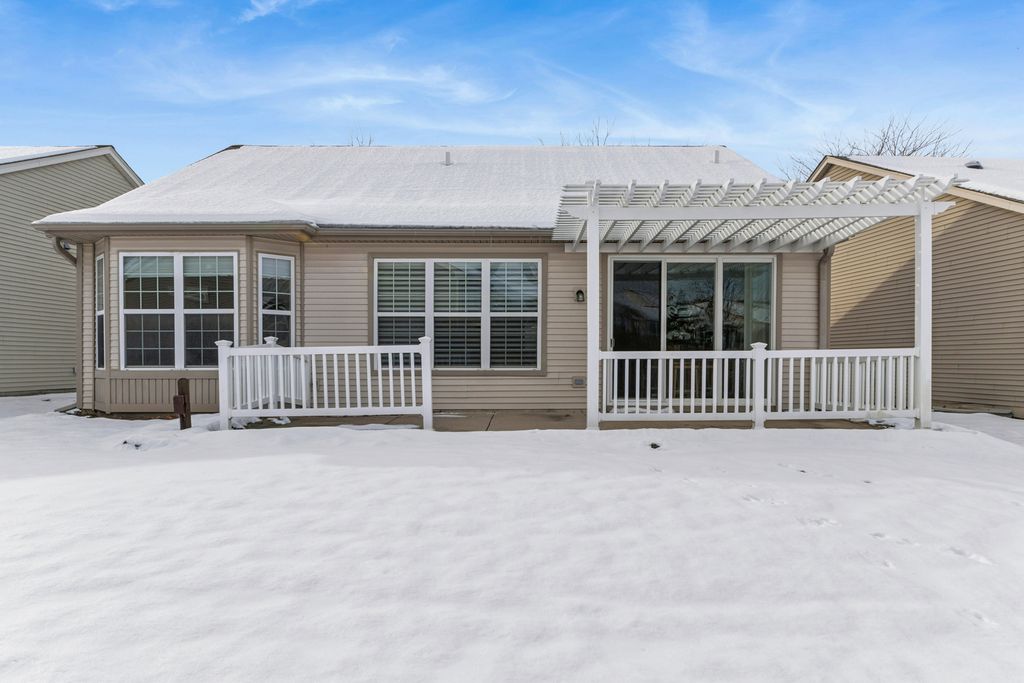 Beautiful "Montrose" model with 1570 sq. ft. and bamboo flooring thru-out!Kitchen has 42" cabinets, corian counters, island, pantry, and place for kitchen table. Master bedroom has bay window and large walk-in closet. There is a newer furnace '25; newer washer and dryer; newer stove; and cement patio with pergola. Rear yard has open view and privacy. Edgewater is an Active Adult Community and one person must be at least 55. Creekside Lodge has a fitness center, indoor pool and hot tub, outdoor pool, tennis and bocce courts, billiards, and many activities inside and out. Edgewater has a 24/7 gate house, snow and lawn maintenance, no more shoveling or grass cutting! Enjoy all the activities at the Lodge too!