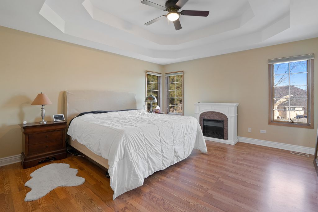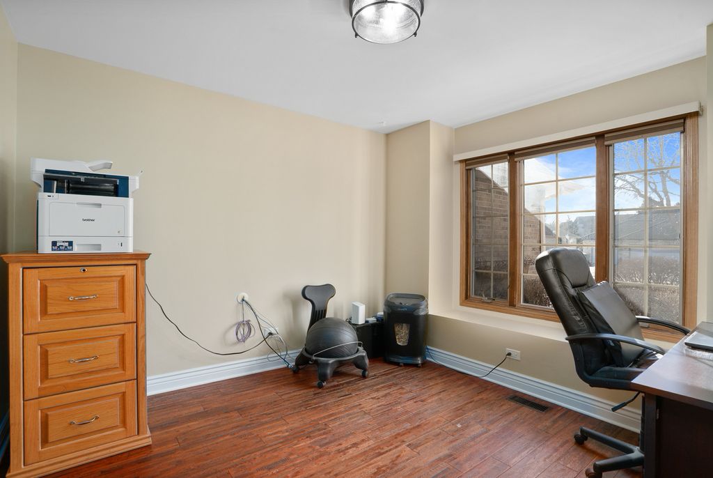 MULTIPLE OFFERS RECEIVED! HIGHEST & BEST REQUESTED BY MONDAY, JANUARY 26TH AT 3PM. Prepare to fall in love with this stunning, custom-built residence-lavishly appointed, impeccably maintained, and beautifully updated throughout with high-end finishes and thoughtful amenities. Nestled on a picturesque, park-like lot, this home offers an exceptional blend of craftsmanship, elegance, and modern comfort. Step inside to a grand living room and an inviting formal dining room, both enriched with crown molding, a charming bay window, and gleaming hardwood floors. Double French doors lead into the dining room for an added touch of sophistication. The updated kitchen is a showstopper, boasting 42" cabinetry, granite countertops, tumbled-stone backsplash, reverse osmosis system, pantry closet, and an additional butler's pantry for effortless entertaining. The sunny breakfast area opens to a sprawling deck overlooking the incredible, fenced backyard oasis-complete with a six-person hot tub, gazebo, garden areas, and a storage shed, all surrounded by mature landscaping. The expansive family room impresses with its beamed ceiling and beautifully updated stacked-stone fireplace with gas logs, providing the perfect gathering space. A stamped-concrete driveway and front porch offer a warm welcome, while the home continues to shine with a central vacuum system, convenient main-level laundry room with custom drying racks & laundry chute, and a heated, extra-deep three-car garage featuring epoxy flooring and a service door to the yard. The main level also includes an updated powder room with a granite vanity, as well as double-door entry to a private office enhanced with attractive plank flooring-ideal for today's lifestyle. The finished basement is an entertainer's dream, showcasing extensive wainscoting, a full bathroom, recreation area, media room, and a large storage space with utility sink. Could also serve as related living. Upstairs, the luxurious master suite offers a dramatic double-tray ceiling, a beautifully updated spa bath with whirlpool tub, separate shower, double vanity, private water closet, and a walk-in closet with custom organizers. The upper level continues with three additional spacious bedrooms: Bedroom 2 features a walk-in closet and built-in bookshelves. Bedroom 3 includes crown molding. Bedroom 4 delights with a vaulted ceiling for added grandeur. Wood laminate flooring in all bedrooms. The updated hall bathroom offers a double vanity and designer finishes. Major updates provide peace of mind, including new refrigerator and dishwasher (2025), furnace (2022), water heater (2022), A/C (2014), and roof (2020). A rare opportunity to own a truly exceptional home that blends timeless character with luxurious modern living-this one stands out from the rest.