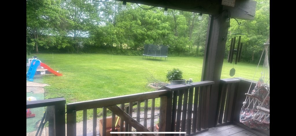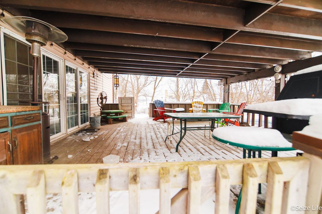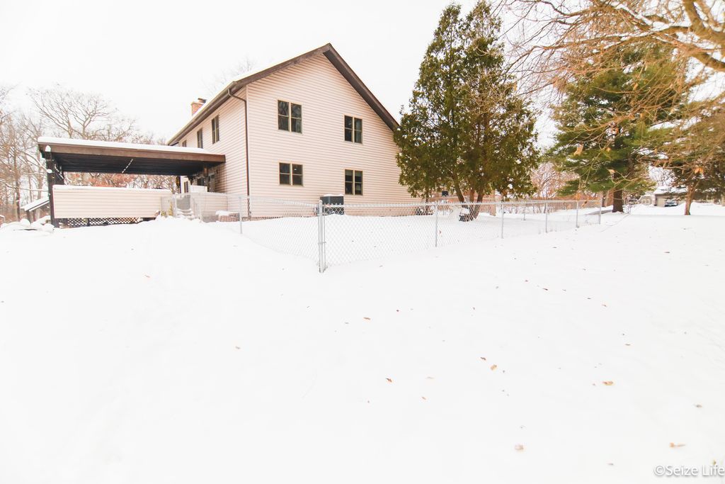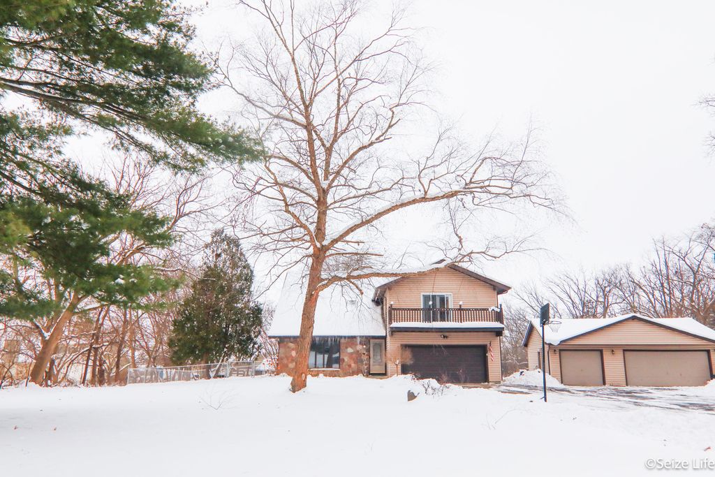 At 435k, THIS MUCH SPACE IS RARE IN TODAY'S MARKET! 2021 UPDATES INCLUDE: HOMEOWNER-OWNED SOLAR PANELS (NO LEASE!!), NEW SHINGLES, SKYLIGHTS, BREAKER BOX & SURGE PROTECTOR, AC/FURNACE, HEAT PUMP, AND WATER HEATER. This property features a beautiful wooded lot, a large covered deck, and ample garage space with a two-car attached heated garage + a three-car detached- perfect for boats, toys, motorcycles, and more. The property also includes a fenced-in area, ideal for a child's playground, pets, or backyard activities, with plenty of room to raise your backyard chickens. Located north of Marengo with easy access to I 90. Room to live, grow and gather. Enjoy a sunken, inviting living room, formal dining room, and a bright, airy family room off the kitchen. The kitchen includes double ovens, abundant oak cabinetry, granite-look countertops, and an eating area with sliders to the deck and in-ground pool, making indoor-outdoor entertaining effortless. Curl up by the warm wood-burning fireplace in the family room on chilly evenings. Upstairs, discover five cozy bedrooms and a sunlit loft with built-in shelving, perfect for a reading nook, office, or play area. The master suite is a private sanctuary, walk-in closet, and french doors open to a tranquil balcony with a beautiful view. The finished basement adds even more versatility with a cozy second family room with fireplace, rec room, bar, sixth bedroom, and full bath. This property blends space and comfort. Perfect for relaxing, entertaining, raising a family, and enjoying country living.