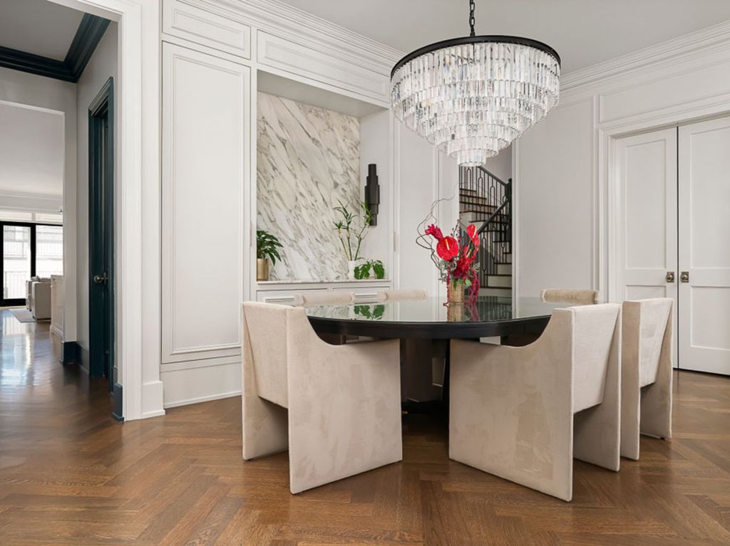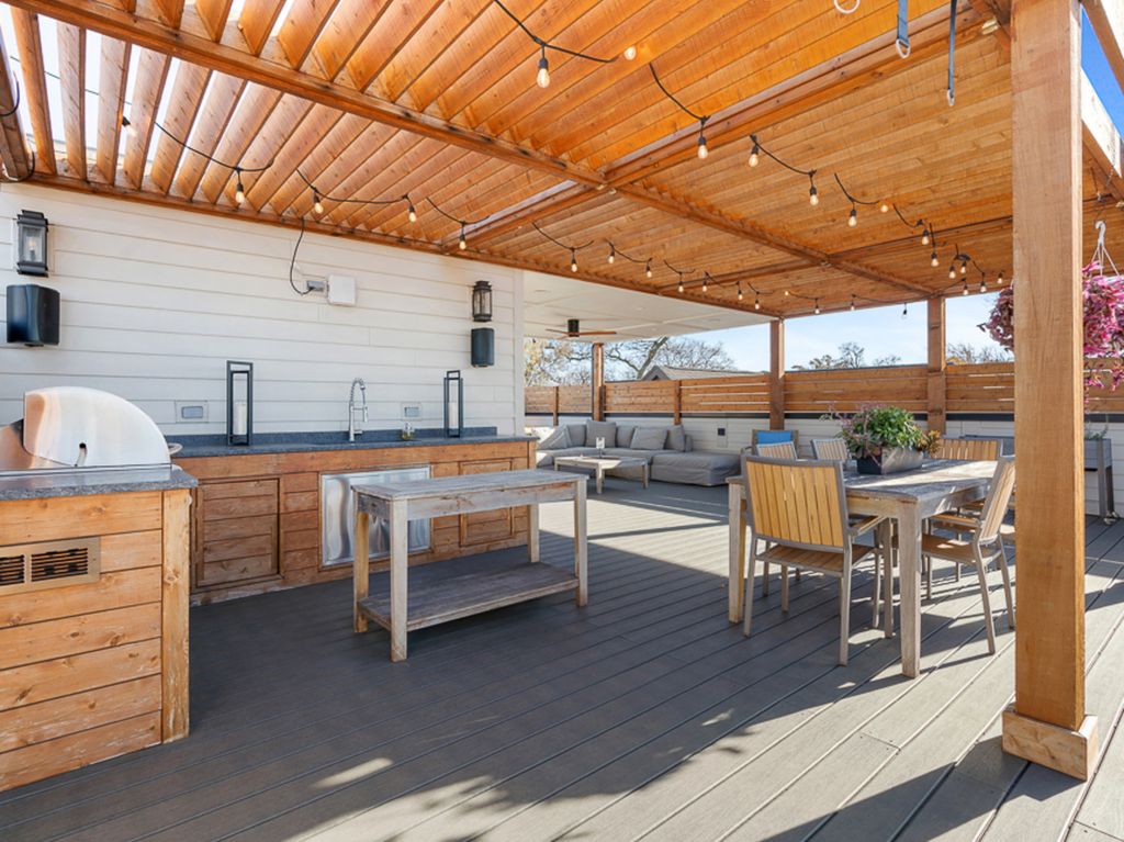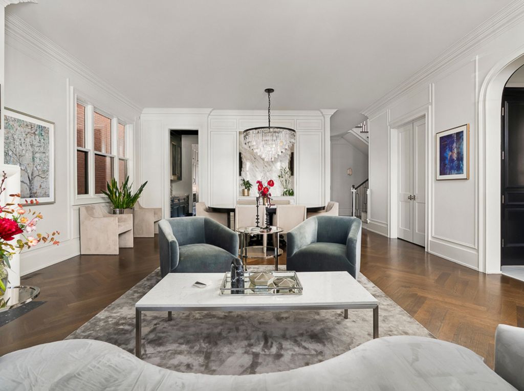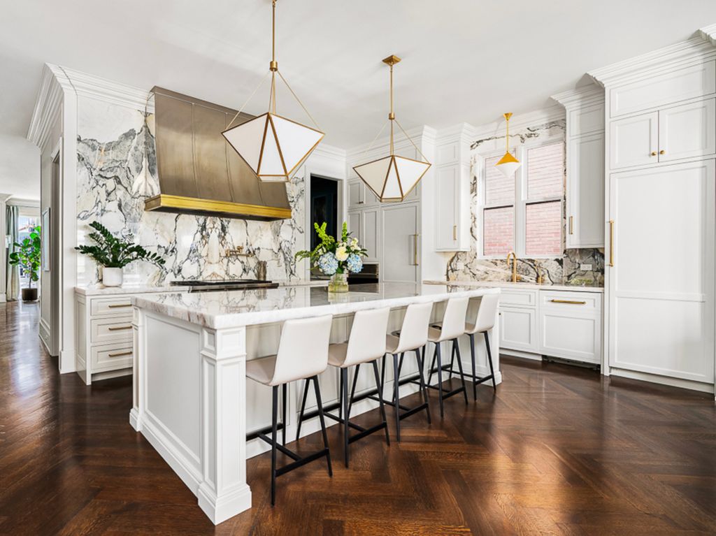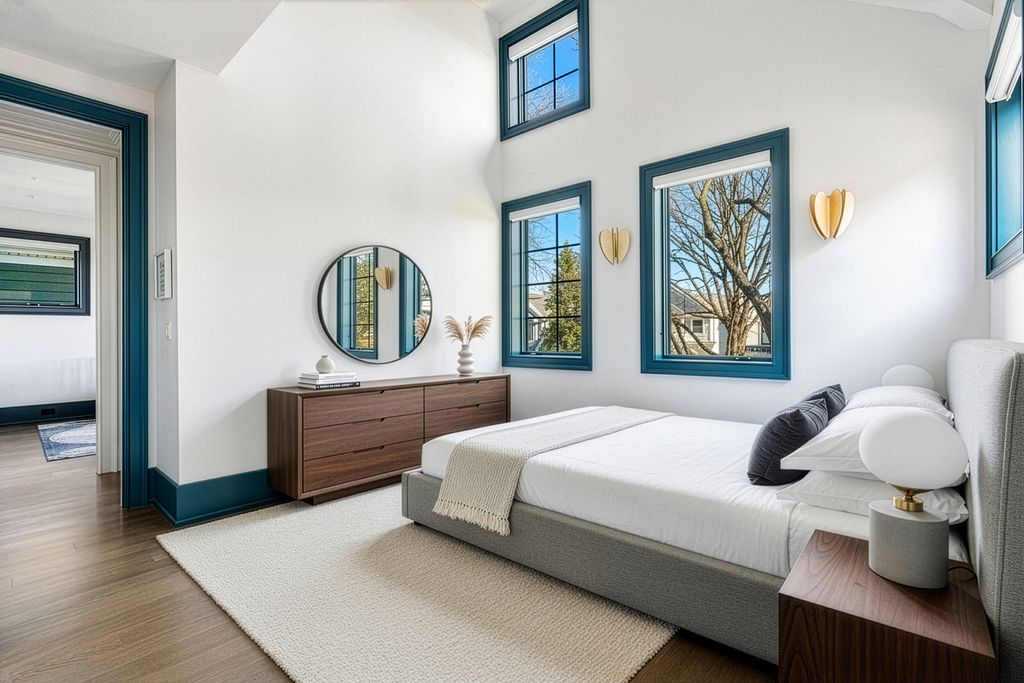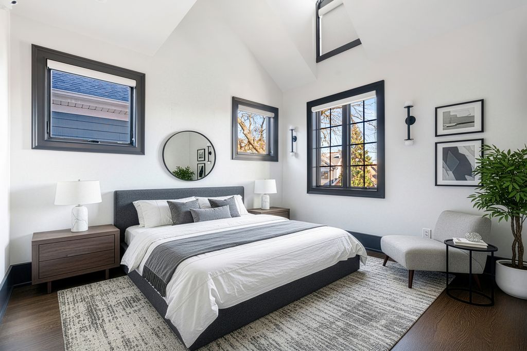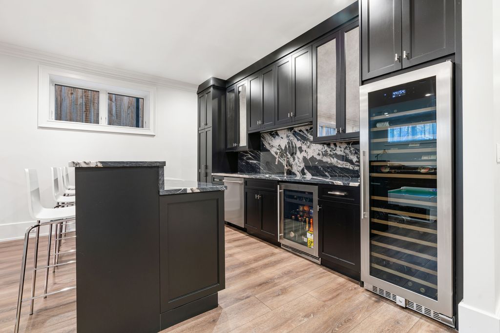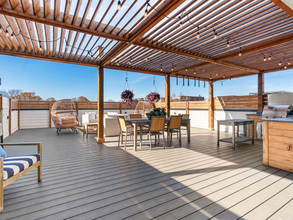 Welcome to 3336 N Oakley, an exceptional residence sitting on a rare 37.5' x 125' lot, built in 2022 in the heart of Roscoe Village. Offering 8 bedrooms, 5.2 baths, 2 dedicated offices and meticulous craftsmanship throughout all three levels, plus multiple outdoor living spaces. Including a fully built-out rooftop with outdoor kitchen and city views, a sports court above the heated 3-car garage, a terrace off the family room and a grassy backyard, this residence is a true urban oasis. A stately brick and limestone facade with a snowmelt walkway sets the tone. Inside, the marble foyer flows into a home defined by herringbone hardwood floors, custom millwork, oversized ceiling heights and pure sophistication. The front living room is drenched in natural light and anchored by a marble fireplace with a rounded lacquered mantel, seamlessly connecting to the formal dining enhanced by a Restoration Hardware chandelier and a discreet built-in buffet. Adjacent, French doors open to one of two home offices. A butler's pantry transitions the front entertaining spaces to the expansive rear living of the home, where the extra width is truly felt. The bespoke chef's kitchen centers around a 10' Iceberg Quartzite island and features a full Wolf/Sub-Zero appliance package, custom Signature Cabinetry, and an Arabescato Marble backsplash. An arched doorway leads to a breakfast banquette enhanced with additional prep space. The kitchen flows into the family room set with a second fireplace framed by custom bookcases, and French doors leading to a terrace for alfresco dining. The main level also includes a bold powder room and a versatile nook at the landing of the stairs. Ascending the architectural staircase, four bedrooms await. The primary suite is a sanctuary featuring dual walk-in closets, a sitting room or second office overlooking the rear of the home and smart shade controls. The spa-like ensuite is wrapped in marble, appointed with a custom dual vanity, soaking tub and an oversized walk-in steam shower with Waterworks fixtures, plus a private water closet with its own sink. Two generously sized secondary bedrooms, each with multiple closets, share a Jack-and-Jill bath, while the fourth bedroom enjoys a private en-suite with walk-in shower. A full laundry room with a utility sink and extra storage completes this level. The lower level is equally impressive with high ceilings, radiant heated floors and a full wet bar with beverage fridge, wine cooler and a dishwasher, ideal for convenient entertaining. Four additional bedrooms, including one outfitted as a home gym, offers endless flexibility along with a second laundry room. Additional features include a functional mudroom, interior sprinkler system, exterior irrigation systems, zoned Lutron and Sonos home automation systems, dual-zoned heating and cooling and equipped with EV charging. All of this located in the Audubon Elementary District and moments from lively Roscoe Street, lined with restaurants, boutiques, parks, and everything that makes Roscoe Village so beloved.