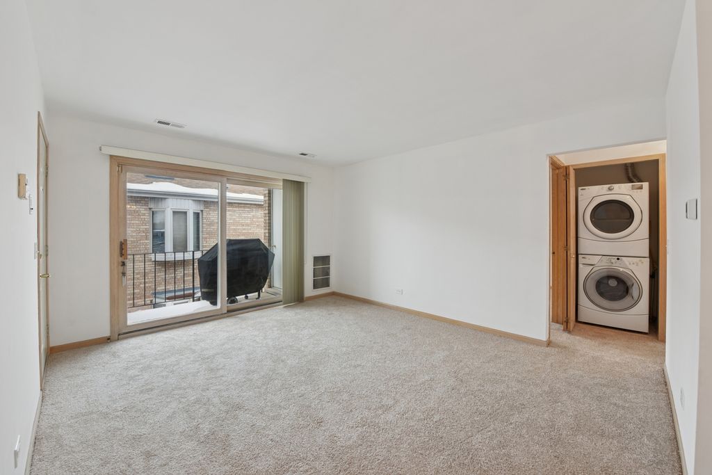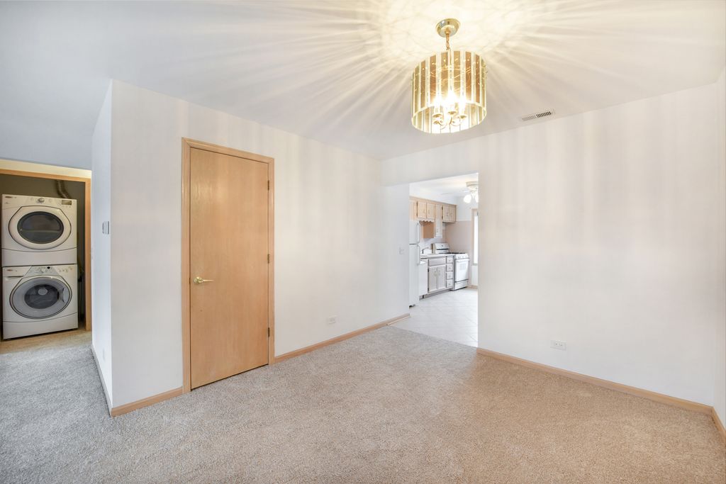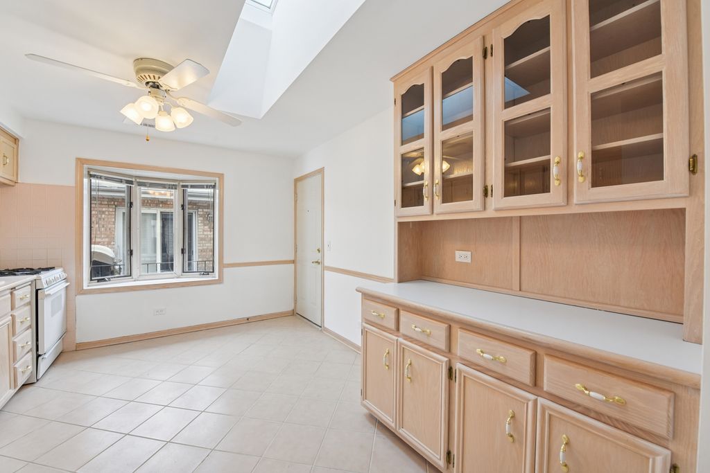 Top-level condo in a three-story building, offering a comfortable and well-designed layout filled with natural light. The home features brand-new carpeting throughout and a bright kitchen with a skylight, dishwasher, refrigerator, and oven/range, along with space for a small dining table. A separate living room and dining room provide versatility for everyday living and entertaining, with a balcony located just off the living room. Enjoy the convenience of an in-unit washer and dryer. The primary bedroom features a private en-suite bathroom with a skylight and a generous walk-in closet. One garage parking space is included, along with a private storage closet in the building's basement. Self-managed building. Ideally located near the train station with quick access to the Kennedy Expressway. Property is being sold As-Is.