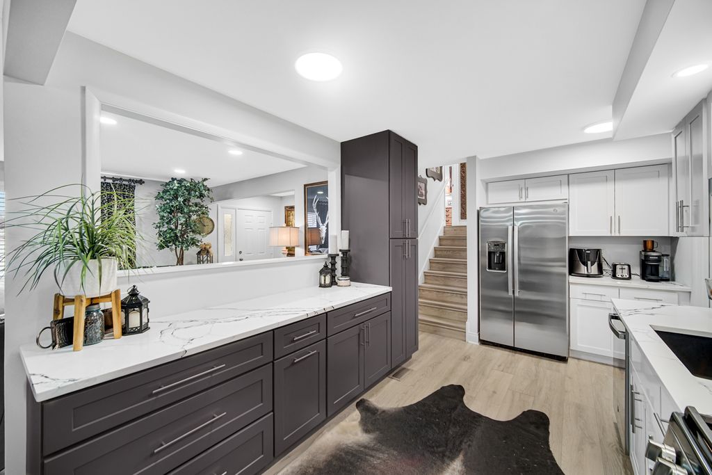 This stunning and completely remodeled townhome features 3 spacious bedrooms, 2 full bathrooms, and a 2.5-car garage in a peaceful, well-maintained community. The living and dining room offer an open layout with abundant natural light, perfect for everyday living and entertaining. Enjoy an updated kitchen with new countertops, modern cabinetry, and plenty of workspace. Ideal for hosting company and gatherings. Both bathrooms have been updated with new granite surfaces, new sinks, and contemporary finishes. One of the three bedrooms is located on the lower level and features a charming brick fireplace - ideal for a cozy master retreat or guest suite. With generous room sizes, thoughtful updates throughout, and a quiet setting, this move-in-ready home is the perfect blend of comfort and style. Don't miss this incredible opportunity!
