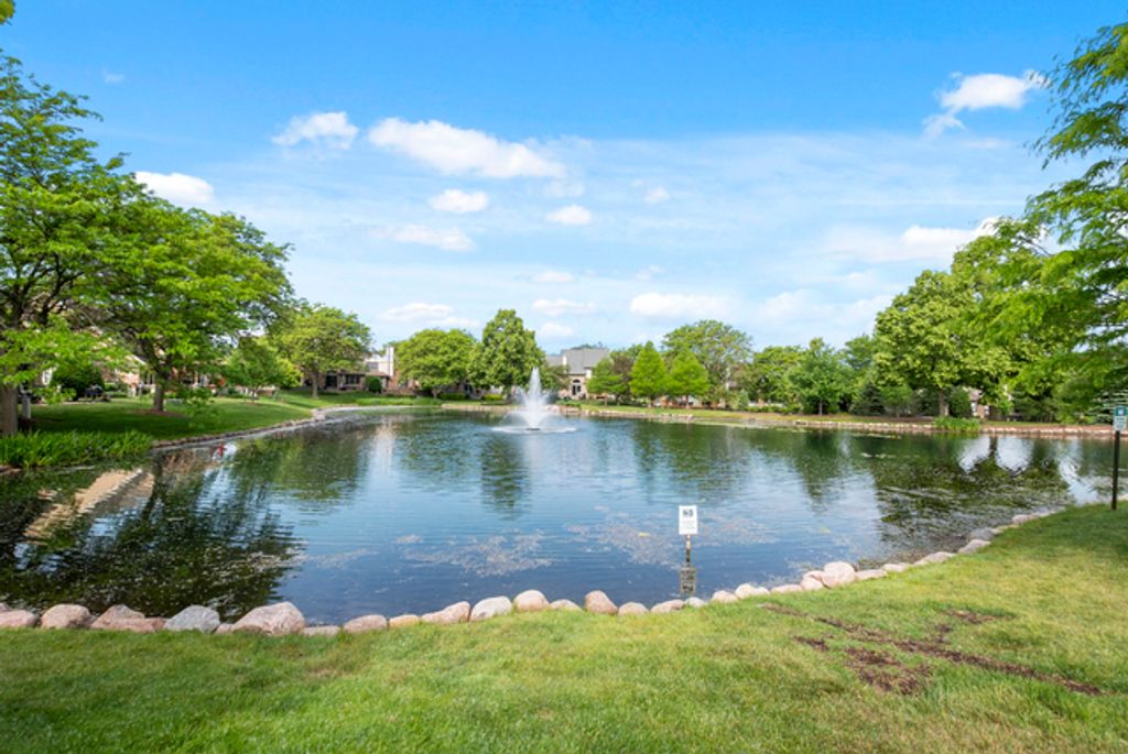 Rare to Market! Prestigious Crystal Tree Golf Course Gated Community - Prime Corner End Unit with Incredible Walk-Out Basement and Serene Pond Views directly facing the Fountain! This exceptional end-unit townhome offers the perfect blend of elegance, comfort, and breathtaking views of the pond and fountain. Featuring hardwood floors throughout all three levels, this home showcases a dramatic living room with a cathedral ceiling, fireplace, and new deck overlooking the water. The first-floor primary suite includes a luxurious bath, while a spacious second bedroom with built-ins offers versatility for guests or an office. The open kitchen features granite countertops, an island, and newer stainless steel appliances, seamlessly connecting to the breakfast room. Upstairs, you'll find a large third bedroom and an expansive loft/family room with pond views. The stunning walk-out lower level is designed for entertaining, featuring a full pub-style bar with new beverage refrigerator and a kegerator, family/media room, fourth bedroom, and a large recreation room with patio doors opening to a pristine brick paver patio overlooking the pond. Updates include new roof, gutters, windows, patio doors, deck, washer, dryer, dishwasher, double full-size ovens, and chimney siding, plus newer HVAC, HWH, basement flooring, and bathrooms (within 10 years). Freshly painted throughout most rooms. A truly rare offering in one of the area's most sought-after gated golf communities-this home is a gem!