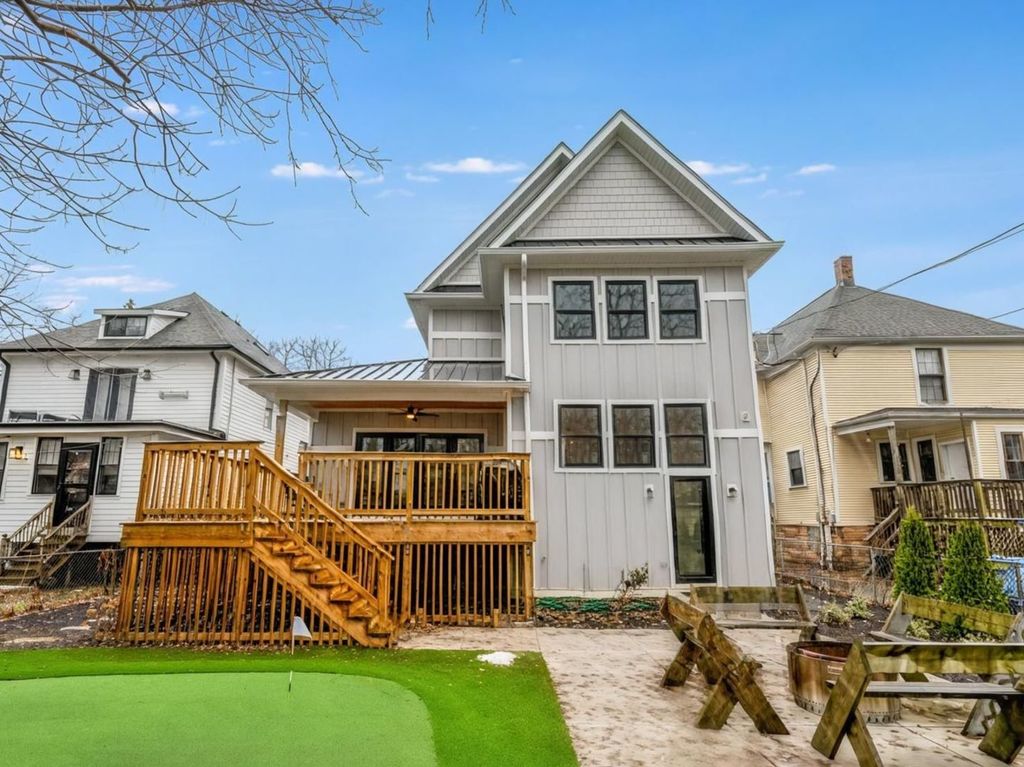 3817 North Lowell Avenue, Chicago, IL 60641 Welcome to this extraordinary residence offering 4,975 square feet of living space on a .165-acre lot. With 6 bedrooms, 4 full baths, and 1 half bath, this home blends elegant design with modern amenities, perfect for both everyday living and entertaining. First Floor- Inviting living room with fireplace and bay windows. Spacious coat closet and convenient half bath. Gourmet chef's kitchen featuring all Thermador appliances, oversized island, and designer lighting. Formal dining room with butler's wet bar and dual wine fridges. Comfortable family room with fireplace, ceiling fan, and access to a large deck overlooking the backyard. Second Floor- Laundry room with folding counter and sink. Linen closet for added storage. Two bedrooms with oversized closets and a full bath with double vanity and separate shower/toilet area. Luxurious primary suite with tray ceilings, custom walk-in closet, and spa-like bath featuring double vanities, makeup area, soaking tub, walk-in shower, and private toilet room. Third Floor- Flexible bedroom or home office. A Full bath for added convenience. Expansive bonus attic space/den. Separate furnace located on this level. Basement- Movie area with Sonos sound system. Golf simulator for year-round practice. Secondary kitchen and bar area. Two bedrooms, including one with rubber flooring ideal for a home gym. Full bath with a steam shower. An extra storage closet, water heater, and secondary furnace. Renovations & Upgrades- Major rehab completed in 2022 with no expense spared. A New roof (August 2022), Heated 3-car garage with additional parking pad, Forced-air gas heating and central air conditioning (2022) with two zones, New water heater (2022), 9-foot ceilings and gorgeous wood flooring throughout. Bathrooms finished with top-of-the-line tile and counters. Exceptional natural light throughout the home with Sonos surround speakers. Outdoor Living- Large front deck with custom woodwork and porch swing. Backyard oasis with putting green and firepit area. This home is a rare find-combining luxury finishes, thoughtful design, and unique entertainment spaces in one of Chicago's most desirable neighborhoods, located just a short walk from the Blue Line.