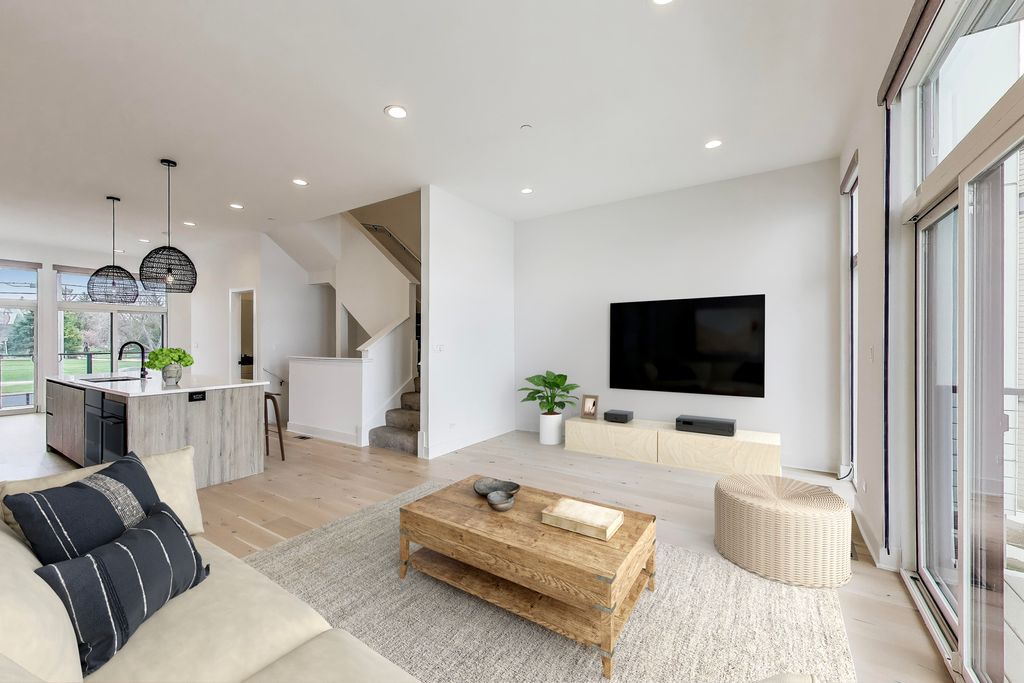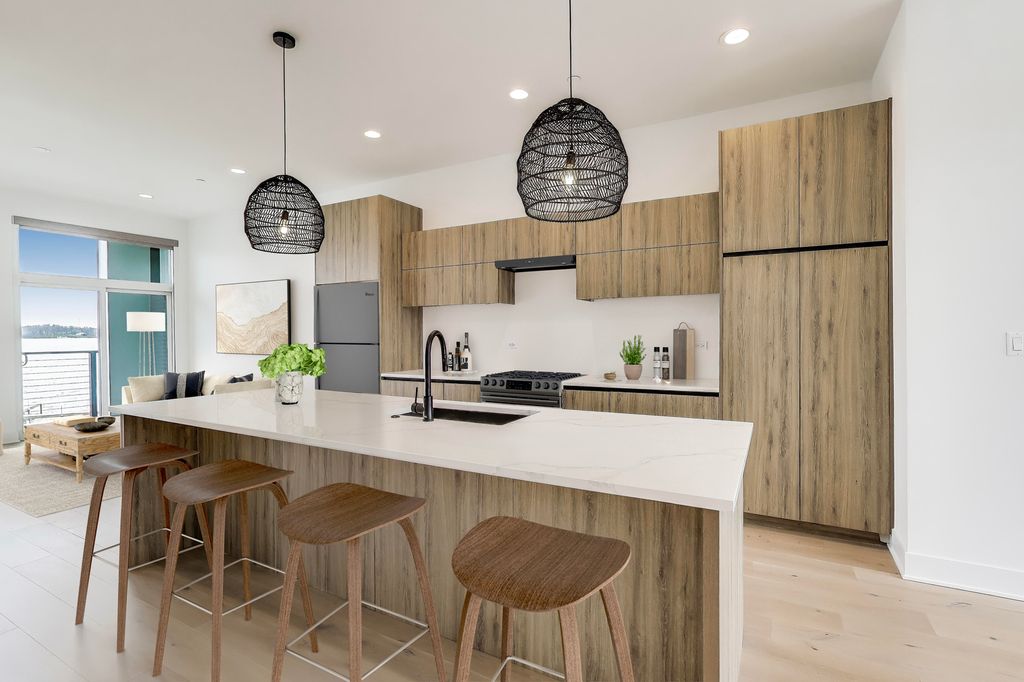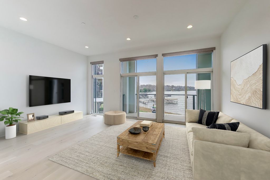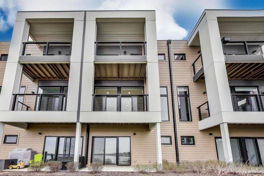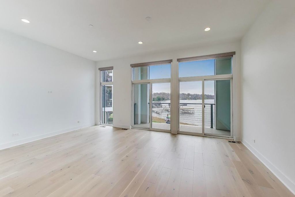 A rare chance to call The Sanctuary on Lake Zurich home - this spacious 2,000-square-foot townhome sits directly on the water and now includes your own deeded boat dock plus a premium LG kitchen appliance package. This exceptional 3-bedroom, 3.5-bath residence spreads across three sunlit floors with a 2-car garage. The ground level offers a cozy family room with full bath opening to a private patio just steps from the community's private beach and boat docks - perfect for relaxing or lakeside fun. Ascend to the second floor and discover an open-concept living area featuring a dining room, a gourmet kitchen with modern cabinetry, quartz countertops, large island, and now upgraded with a full premium LG black stainless steel appliance package, plus a sun-drenched living room that flows out to a private deck showcasing panoramic lake views.The top floor hosts all three bedrooms - each with its own private balcony - along with convenient laundry. The primary suite boasts an en-suite bath and walk-in closet. Enjoy soaring 10-foot ceilings, recessed lighting, custom electronic shades on every window, durable vinyl tile on the ground level, hardwood throughout the main living floors, and plush carpeting in the bedrooms. Lake Zurich is a pristine, private 232-acre spring-fed lake where only property owners enjoy exclusive boating rights. Living in the gated Sanctuary community places you directly across from the new Lifetime Fitness and mere steps from the celebrated Italian steakhouse LAGO by Fabio Viviani. Don't miss your chance to own this rare lakefront property!