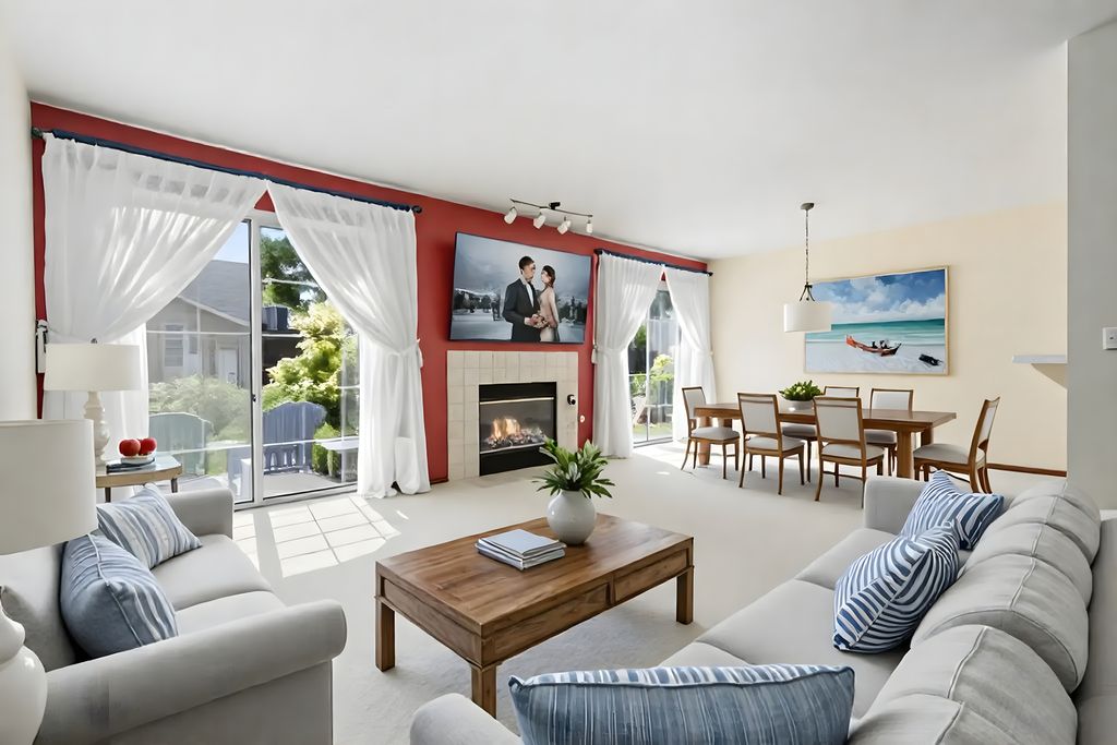 Beautifully updated 2-story townhome in Arlington's highly sought-after Westridge community! This spacious home offers 3 large bedrooms and 2.5 baths, with brand-new carpeting throughout. The bright and inviting living and dining area is filled with natural light and features a cozy fireplace highlighted by a bold accent wall. Dual sliding glass doors open to two private patios and a landscaped outdoor space, creating seamless indoor-outdoor living. The open-concept layout includes a generous dining area perfect for entertaining, enhanced by modern fixtures and serene views. A convenient first-floor laundry with full-size appliances and an attached 1-car garage adds everyday ease. Upstairs, you'll find three spacious bedrooms, including a stunning primary suite with a huge en-suite bath featuring a double vanity, soaking tub, and separate shower. This is a wonderful opportunity to own a stylish and well-maintained home in a desirable neighborhood!