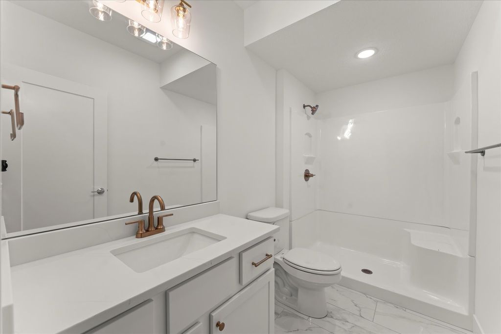 Discover spacious, flexible living in this new construction 5-bedroom, 2-story home in the desirable Thornewood Subdivision. The main floor features a versatile flex room with vaulted ceilings-ideal for an office, playroom, or creative space-along with an inviting living room showcasing a gas log fireplace that flows seamlessly into the dining area and well-appointed kitchen with an island and built-in microwave. A convenient mudroom off the 3-car garage and a half bath add everyday functionality. Upstairs, the primary suite impresses with tray ceilings, a luxurious ensuite offering double sinks, a walk-in tile shower, soaking tub, and a generous walk-in closet. Three additional bedrooms, a full bath with double sinks, and a convenient laundry room complete the second level. The finished basement expands your living options with a fifth bedroom featuring egress, a full bath, a large rec room, and ample storage. Outside, enjoy a spacious backyard perfect for relaxation or play.