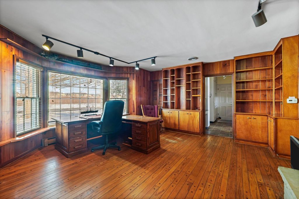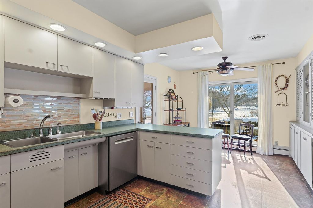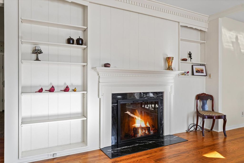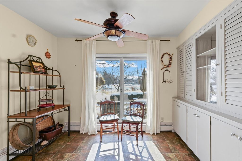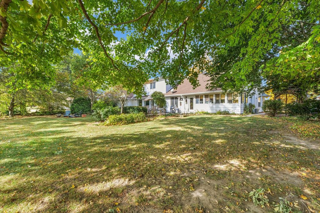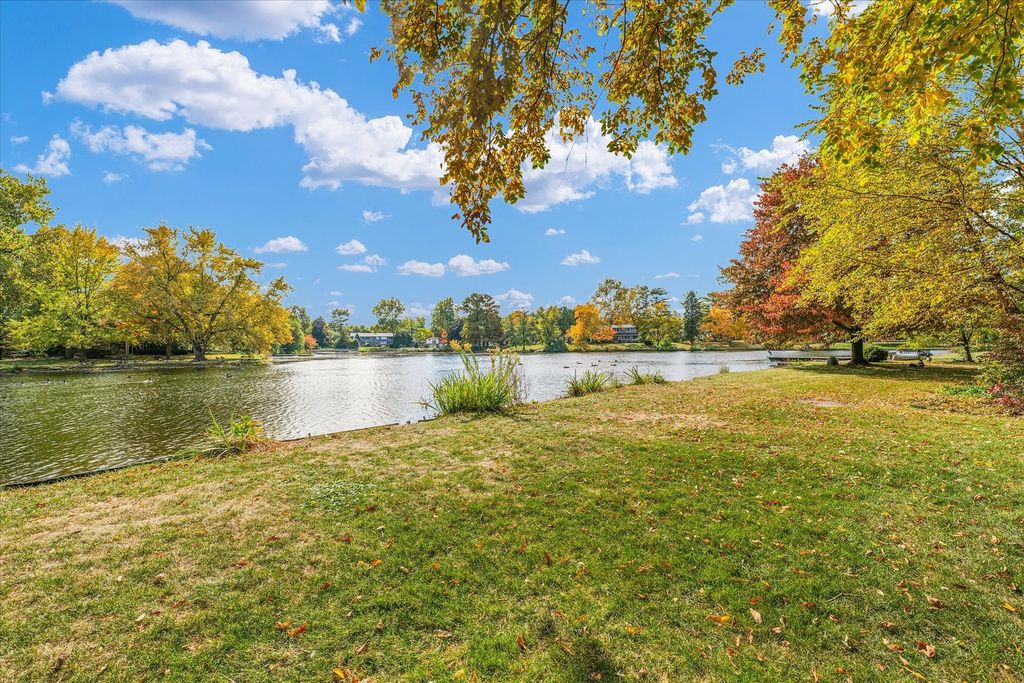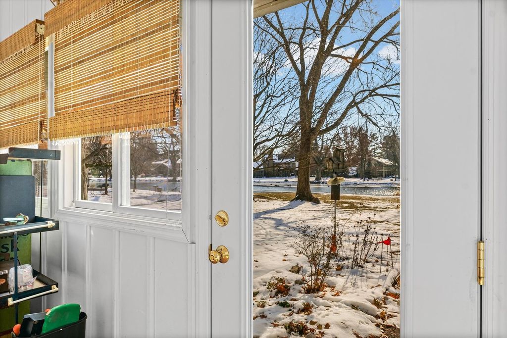 Beautiful three-bedroom, two and a half bathroom, one and a half story home overlooking the water in the highly sought after Lake Park Subdivision, offering peaceful lake views from almost every room. The first floor features a spacious primary bedroom with hardwood floors, custom interior shutters, a full wall of closets plus a walk-in closet, and an en suite bathroom with dual vanities, a step-in shower, and a jacuzzi tub. Convenient access to the laundry room is located just off the suite. The living room is filled with natural light and sweeping views of the lake through large windows, and includes hardwood floors, a gas fireplace, and built-in shelving that anchors the space. A separate family room also features hardwood flooring, a fireplace, wall-to-wall built-ins, and a walk-in closet for added storage. The kitchen offers generous cabinet storage and countertop space, along with a cozy breakfast nook and additional built-in cabinetry. Adjacent to the kitchen is a flexible bonus room that's perfect for an extra pantry, a small office, or a drop zone. Just off the breakfast nook is a bright studio space with its own split-unit heating system for year-round comfort, originally used as an art studio and suitable for a variety of uses. Upstairs, you'll find two additional bedrooms and a full bathroom. One bedroom includes a walk-in closet, while the other provides access to the expansive unfinished attic, ideal for incredible storage. Outside, enjoy the mature trees and perennials. Spend summer days relaxing on the patio with beautiful water views, or enjoy the serene, snow-covered shoreline in the winter for a truly breathtaking setting. Lake Park residents enjoy access to wooded areas, scenic trails, community gardens, and approximately 7 acres of restored prairie. The neighborhood also features a beautiful 6-acre lake perfect for swimming, relaxing on the sand beach, fishing, and enjoying non-motorized boating. Low county taxes are an added bonus to this special property.