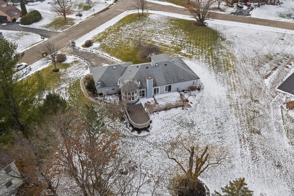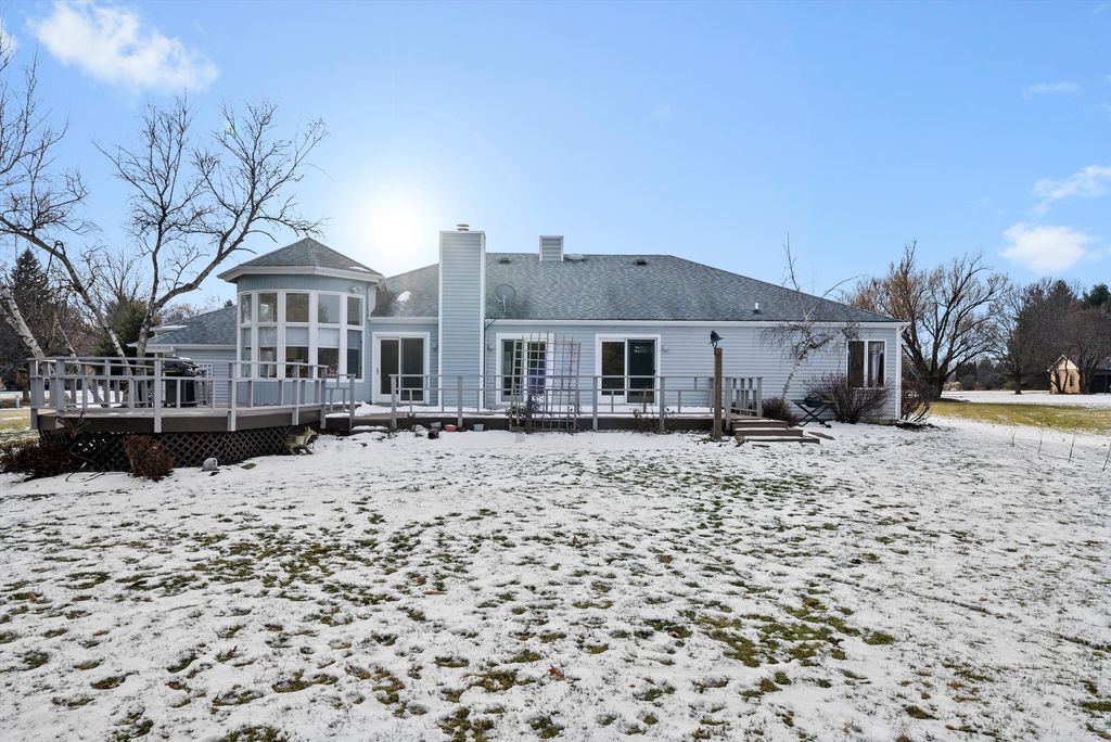 Tucked away in the secluded Woodcreek subdivision, this stunning ranch offers nearly an acre on a corner lot with easy access to McHenry, Crystal Lake, and Woodstock. Featuring 10-foot ceilings, a gas fireplace, and newly refinished hardwood floors on the main level, the home feels bright, open, and inviting. The fully remodeled master bathroom impresses with a dual-sink vanity, large glass shower, and separate soaking tub, while two additional bedrooms share a hall bath. Entertain in the bright eat-in kitchen with a wall of windows, formal dining room, or expansive 2-tier deck overlooking the serene backyard. The huge finished basement includes a private entrance and bathroom rough-in, plus new carpet. Additional highlights include a heated 3-car garage, den/front room perfect for a home office or playroom, new AC (2025), newer roof, and furnace-combining modern comfort with timeless style.