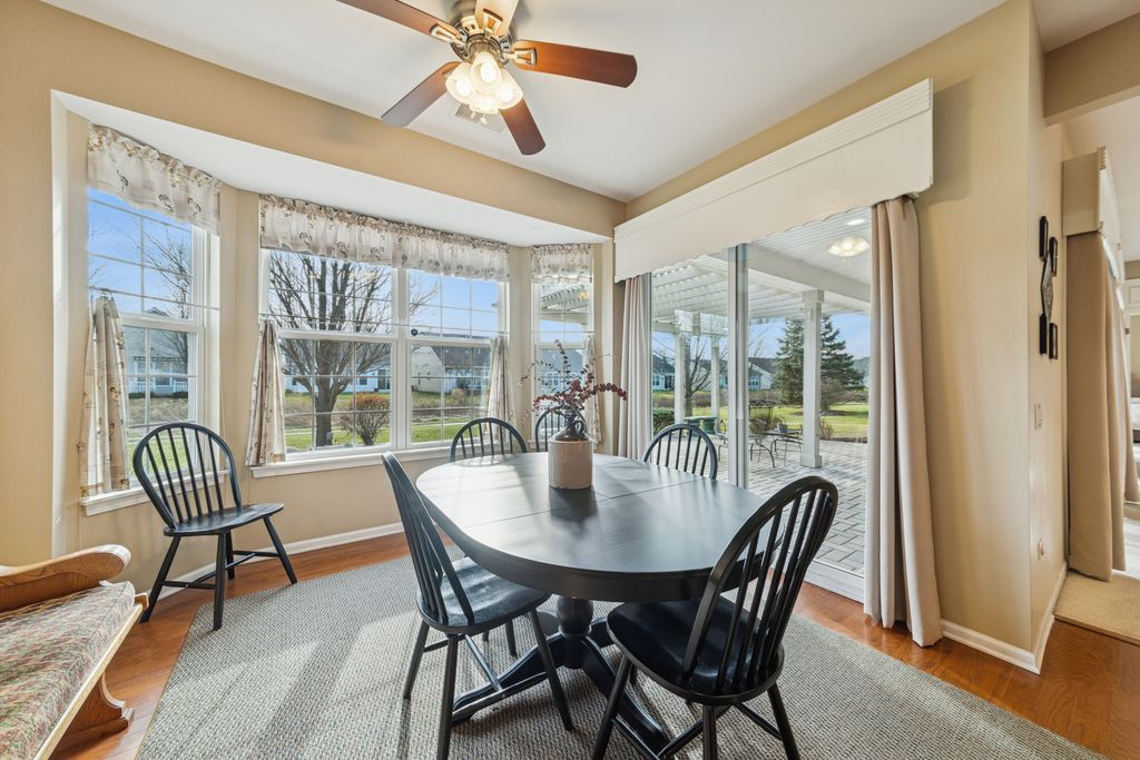 *OPEN SUNDAY 1:00-3:00**Exceptional location for this popular "Cascade" model across from Creekside Lodge and on walking path! Kitchen has 42" maple cabinets, granite counters, hardwood floors, and bay window. Look out the window or sit on the paver patio with pergola to see all the birds and wild-life! Master Bedroom has bay window and large walk-in closet. Master bath has cherry cabinets and soaking tub and separate shower. 2nd bathroom has roll-in shower and extra wide doors. Utility room has enclosed mechanicals. Extended garage with cabinet, pull down stairs,and epoxy floors. *Furnace, refrigerator, & new kitchen flooring was replaced. (Current owners qualified for Sr. Exemption but were not receiving it so tax bill for 2024 is $9,828.44 with only homestead exemption.) Edgewater is an Active Adult community and one resident in home needs to be at least 55+. Edgewater takes care of snow and lawn maintenance, seal coating and mulch every other year, and Creekside Lodge has indoor and outdoor pools, hot tub, fitness center, billiard room, tennis/bocce courts, and many activities. HOA on this home is $302.25 per month.