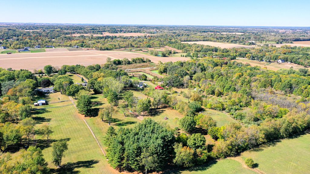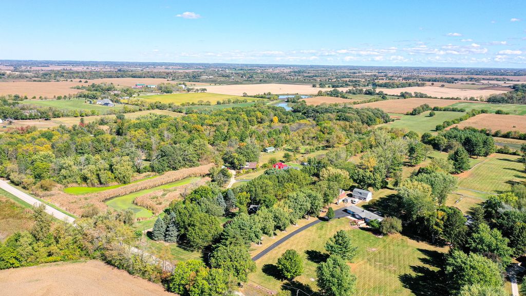 Discover the perfect blend of country living and comfort on this beautiful 5-acre Huntley estate designed for horse enthusiasts! This spacious 4-bedroom, 2.5-bathroom home has been thoughtfully updated with newer windows, luxury wood laminate flooring, a 2023 exterior paint refresh, a 2020 furnace, 2018 A/C, and a 2015 well. The kitchen boasts abundant cabinetry, Corian counters, and stainless steel appliances, while the living room offers serene views of the barn and pastures. The master suite includes a private bathroom, and two additional bedrooms with a second full bath provide plenty of space for family or guests. All 3 bedrooms and hallway have been freshly painted including the trim and baseboards. New LED lights, floor registers, and socket covers have also been added in this space. The fully finished basement adds even more living space with a large family room, fourth bedroom, workshop/storage area, and a convenient laundry room, complete with 2 washers and 2 dryers! Every detail of this home and property has been cared for, offering both comfort and practicality for your family and your horses. Step outside to your private equestrian oasis. A Cleary barn with three horse stalls, turnouts, and pasture is ready for your horses. The barn has a dedicated tank and septic system. It also features a climate-controlled office/tack room and a full bathroom, perfect for training, grooming, or simply enjoying your equine companions. Two additional sheds with cement floors and electricity provide extra storage for equipment, tools, or feed. Relax on the new backyard concrete patio (2023) and take in the peaceful surroundings, or welcome guests along the brick paver walkway leading to the front door. A concrete pad with a 30-amp connector is ideal for a motorhome or boat. This property is truly one-of-a-kind, boasting Huntley's oldest oak tree in the backyard, adding timeless charm to your private acreage. With the lot sitting high and dry, you'll enjoy both peace of mind and natural beauty. Don't miss this exceptional opportunity to own a premier Huntley horse property, offering everything you need for country living, equestrian pursuits, and family enjoyment. All just minutes from Rt 20 and I-90!