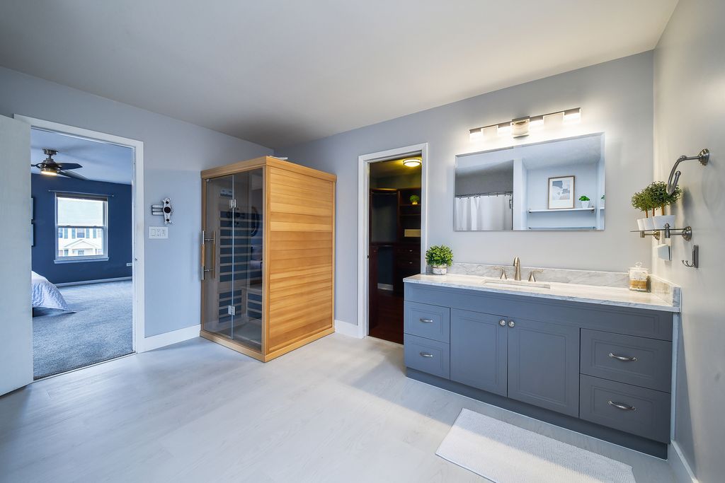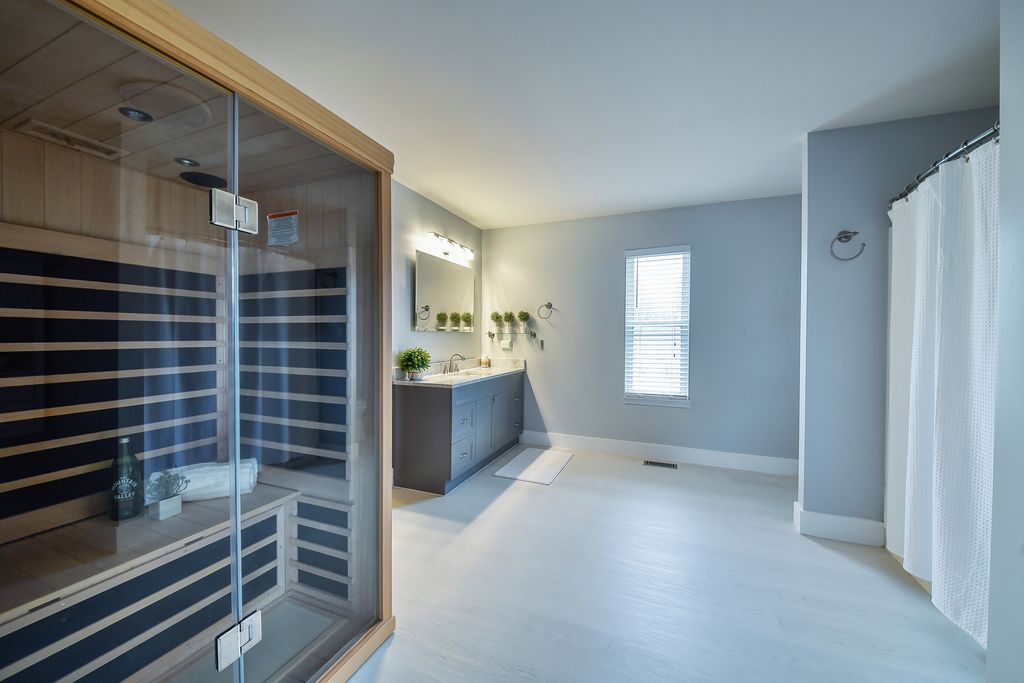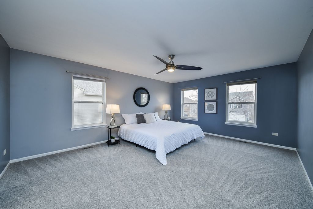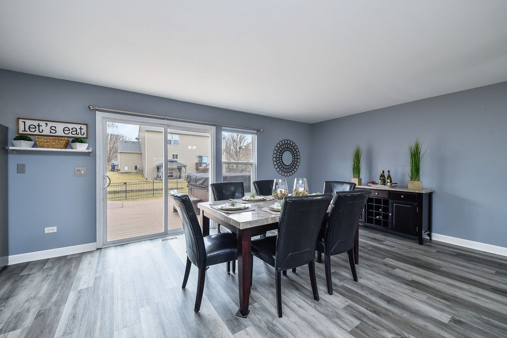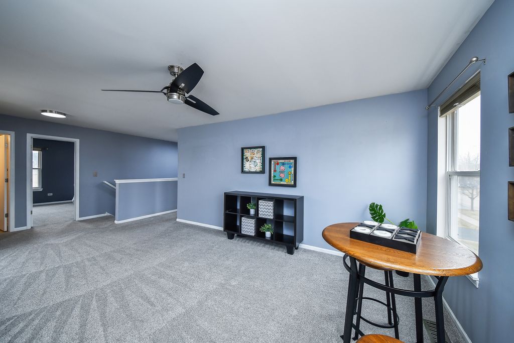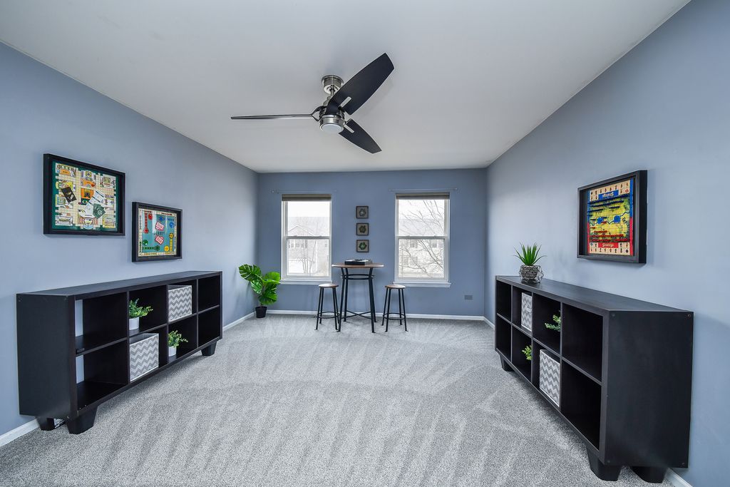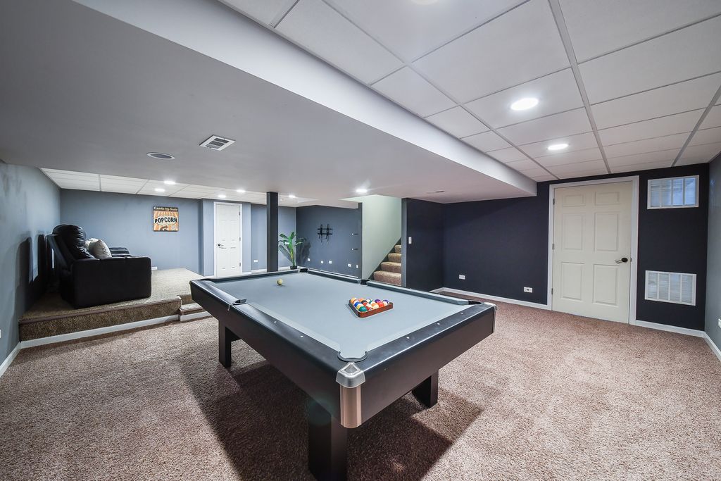 Move-in ready home in the desirable Blackberry Creek community featuring 3 bedrooms, 2.5 baths, and exceptional spaces for both everyday living and entertaining. The spacious primary suite includes a large en-suite bath with a private sauna and a walk-in closet with built-in shelving. Upstairs also offers a versatile loft area ideal for a playroom, home office, or additional living space. The finished basement is designed for entertaining, featuring theater-style seating, an included pool table, and plumbing rough-in for a future bathroom. Step outside to enjoy the deck, fenced yard, and hot tub, perfect for relaxing or hosting gatherings. A built-in gas line for the included grill and an additional gas line ready for a future fire pit make outdoor entertaining easy. This well-appointed home offers the perfect blend of comfort, functionality, and entertaining space both inside and out.