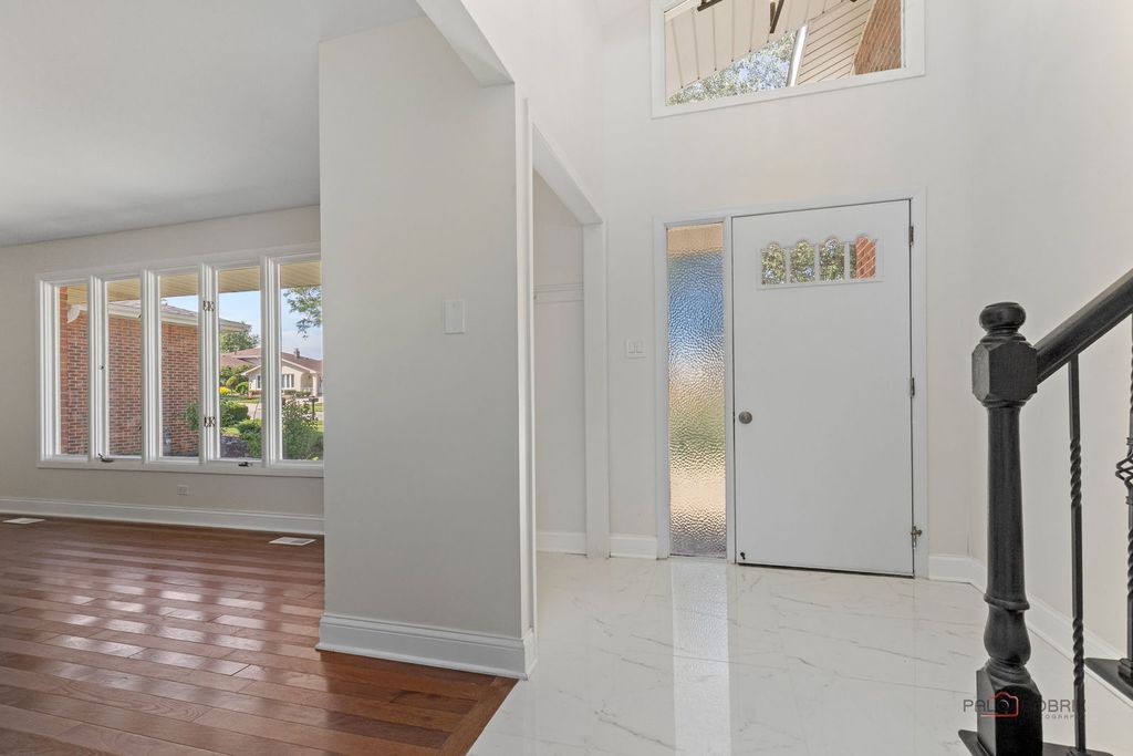 This beautifully updated home features 4 bedrooms and 4 bathrooms, located in one of Orland Park's most desirable areas. When you walk in, you are greeted with elegant marble flooring that seamlessly blends into the brand new hardwood flooring carried throughout the home. The bedrooms are generously sized, with the master bedroom featuring its own private bathroom for added convenience. The kitchen is designed with both style and practicality, showcasing quartz countertops, a marble backsplash, and updated finishes. The bathrooms are updated with spa-inspired designs, providing a clean and relaxing atmosphere. The finished basement includes a custom bar with quartz countertops, creating the perfect setting for entertaining. This home combines modern updates with a prime location, offering a move-in ready option for buyers seeking comfort and convenience in Orland Park.