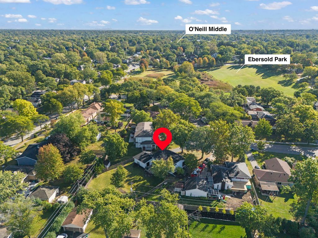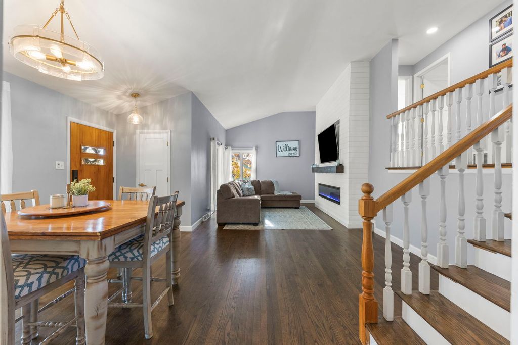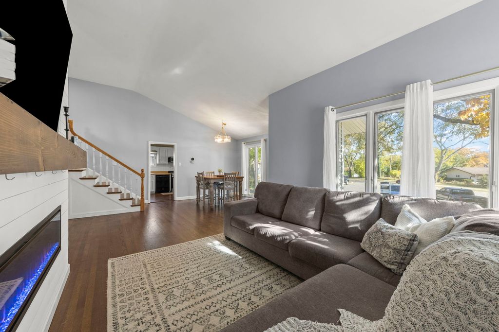 Bright and beautifully updated, this solid home with a mid-century modern vibe offers nearly 2,400 sq. ft. of total living space on a quiet semi-cul-de-sac near both Hillcrest Elementary and O'Neill Middle School. The main level features vaulted ceilings, expansive windows, and open sightlines that fill the home with natural light. In 2024, the home received a new roof, updated plumbing and electrical systems, and new hardwood flooring throughout. Custom accent walls, upgraded moldings, and fresh paint add warmth and character to every room. The living room showcases a stunning shiplap feature wall with a modern electric fireplace and custom wood mantel, creating the perfect focal point for gatherings. The kitchen features a new stove, microwave, and washer/dryer (2025) for a fresh, move-in-ready experience. The finished english lower level includes a fourth bedroom, and a full bathroom-ideal for guests, a playroom, or home office. A large unfinished sub-basement provides ample storage, workspace, and laundry. The oversized 2.5 car garage offers generous storage with double-door access to the brick patio and expansive backyard, nearly fully fenced and perfect for entertaining, gardening, or play. Close to Ebersol Park, Hillcrest School, the YMCA, and major highways-this home beautifully blends mid-century character with today's modern updates. Ask listing agent for a list of features & improvements!