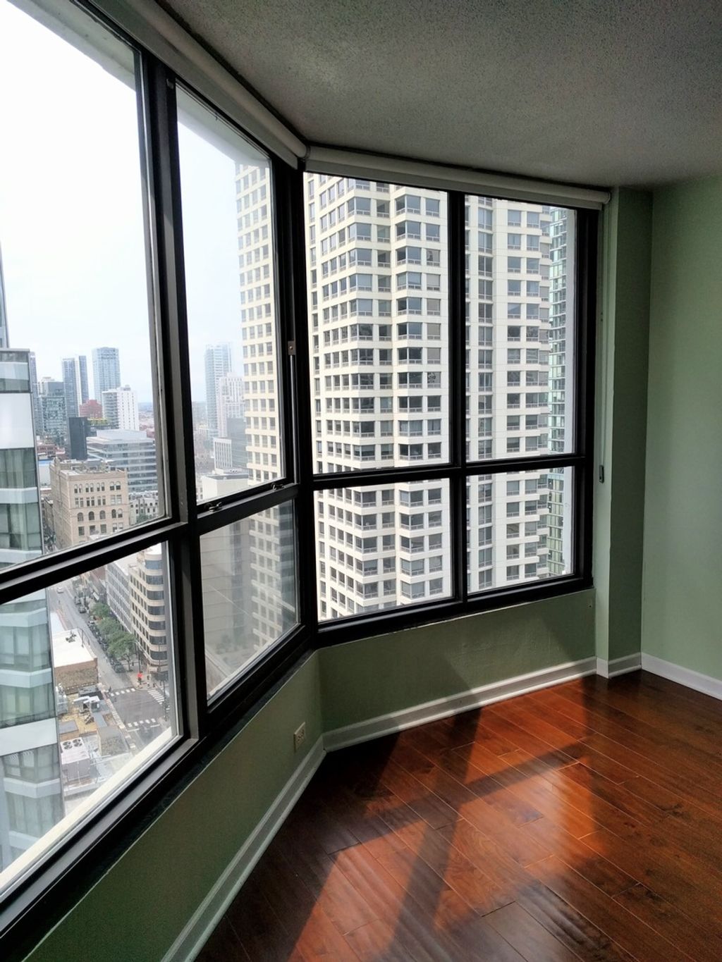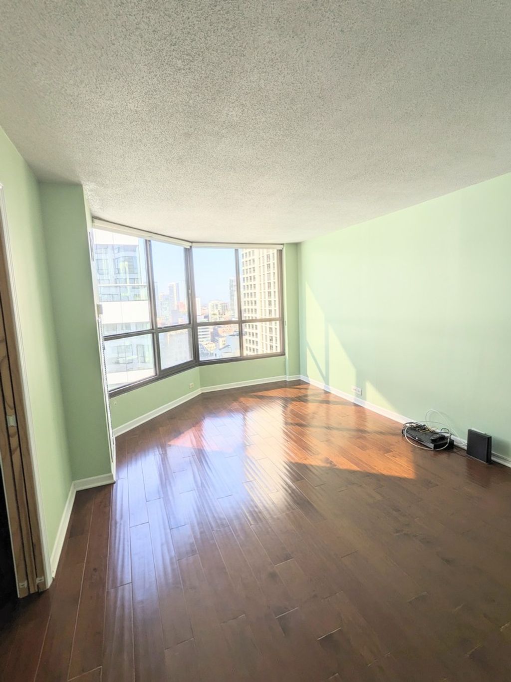 Renovated junior one-bedroom unit is ready for immediate move-in. Enjoy excellent natural light and well-laid-out floorplan, including plenty of storage! Entry has a coat closet, small den space has built-in shelves, and unit has a walk-in closet AND basement storage unit. Features hardwood floors throughout with Hunter Douglas roller blinds, just installed last year. Kitchen upgrades include solid wood cabinets and granite countertops. Location is unbeatable! Walk to the river and Lake Michigan, multiple subway/bus lines, and the city's best shopping and restaurants. Internet and cable TV are included in the monthly assessment and building offers 24/7 doorperson, fitness center, swimming pool and hot tub, terrace, and business center. Parking is currently leased and can be purchased afterward.