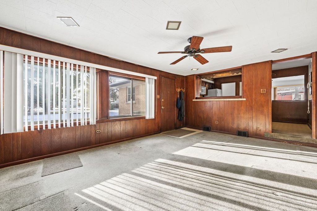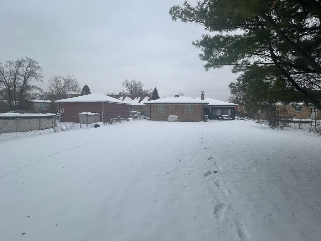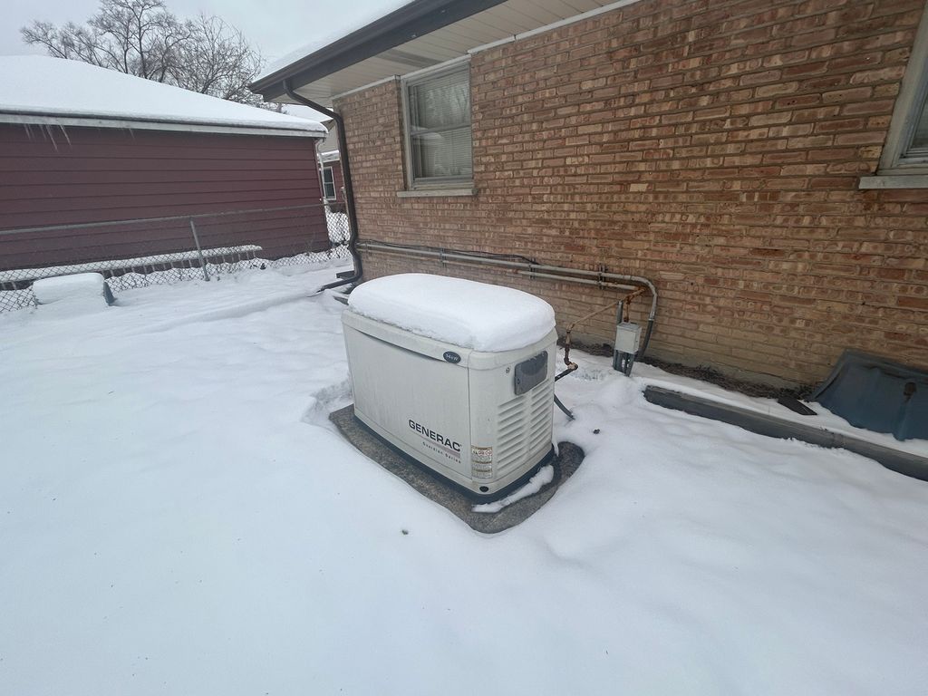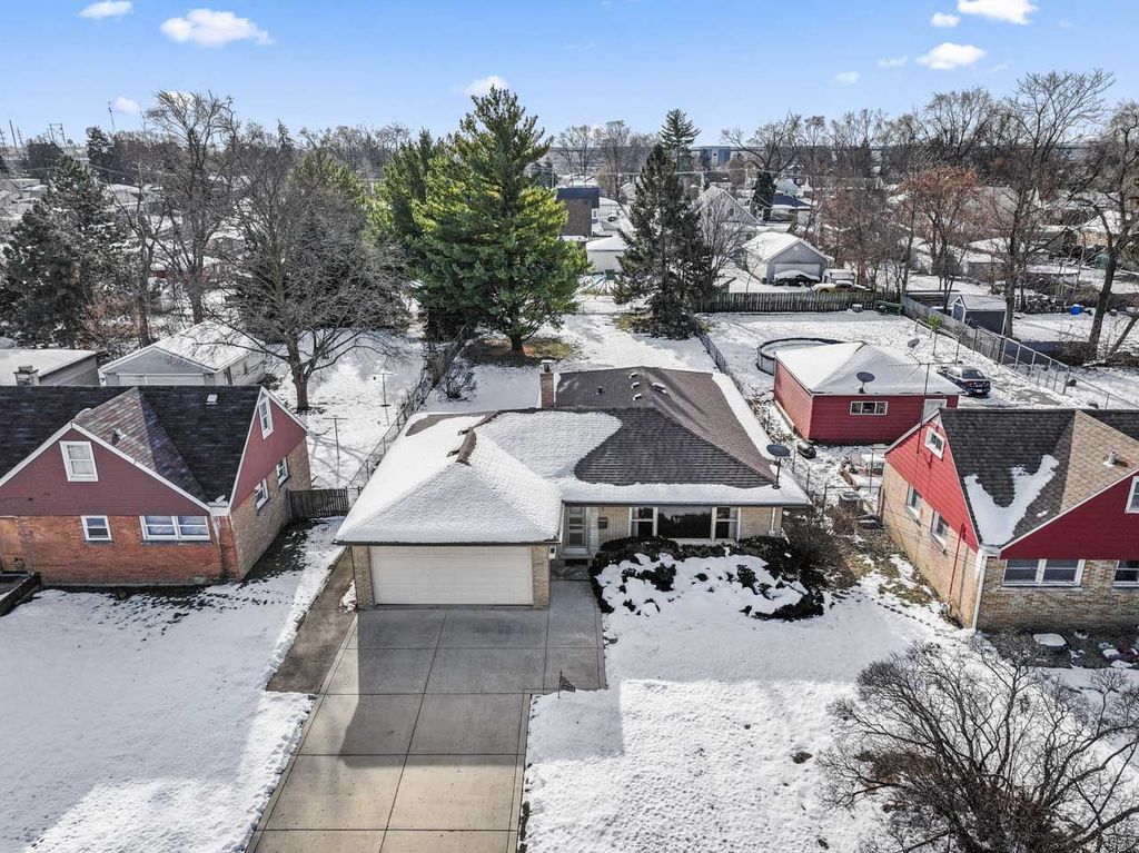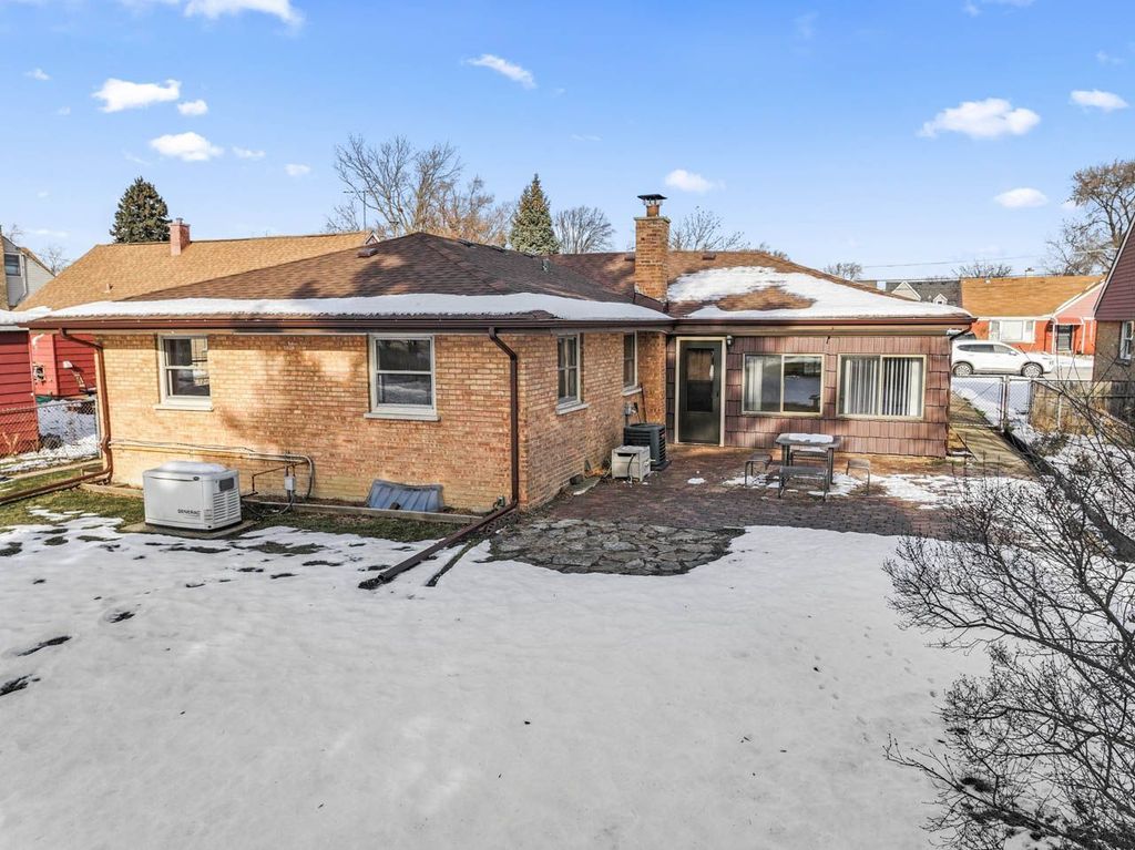 Welcome to 10113 W Palmer, this solid, well-maintained brick ranch and the great neighborhood! Spacious and charming, this home offers 3 bedrooms and 1 full bath, with an extra bedroom/office in the basement. The kitchen has dining space with a pass-through window to the family room, and the family room opens to a brick paver patio.... ready for BBQs! There are oak hardwood floors throughout the living room, dining room, and bedrooms. The full basement- which adds lots of space for hobbies, fitness equipment, or just relaxing- includes a unique, original log cabin-style rec room with a bar, perfect for entertaining. The attached garage offers the ease of coming and going while protected from weather, as well as extra storage. There's a huge fenced yard: 60' by 186'! And you'll enjoy peace of mind with the 14KW whole-house generator that provides ample power during storms or outages, and an active alarm system. Additional major updates have already been completed: new roof with ice dam shield in 2025; new furnace 2021; new A/C 2021. Close to shopping, dining, and everyday conveniences-this home truly has it all. This home is not located in any flood zones.