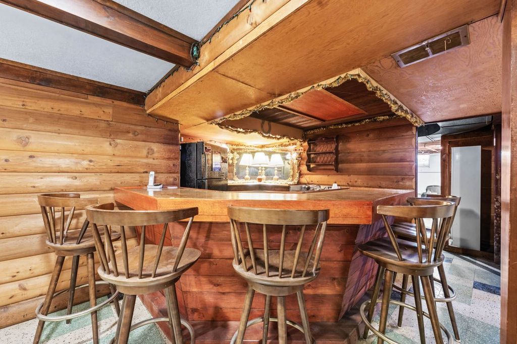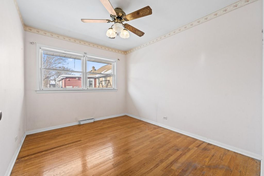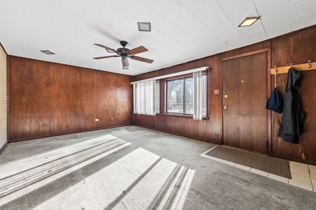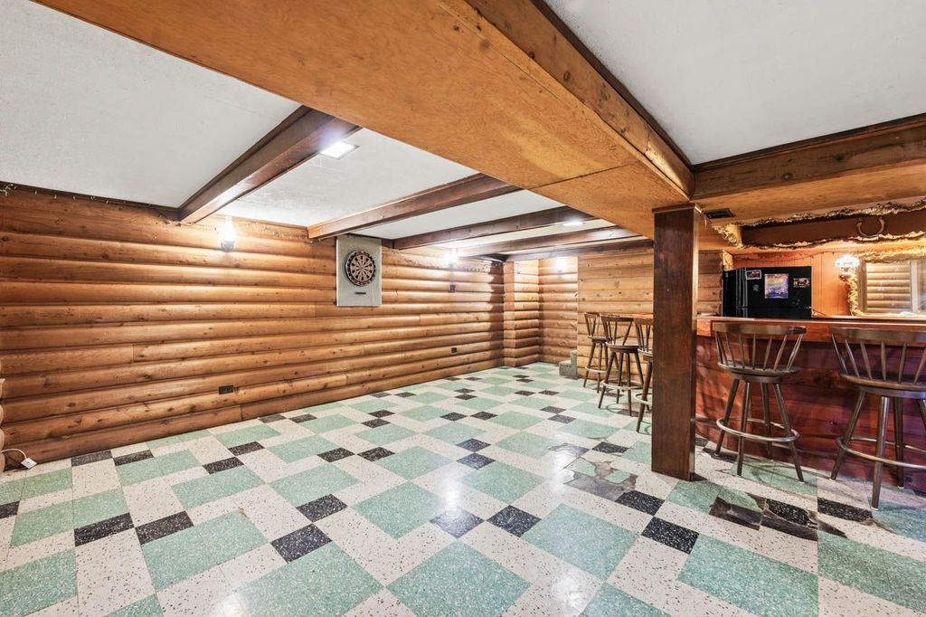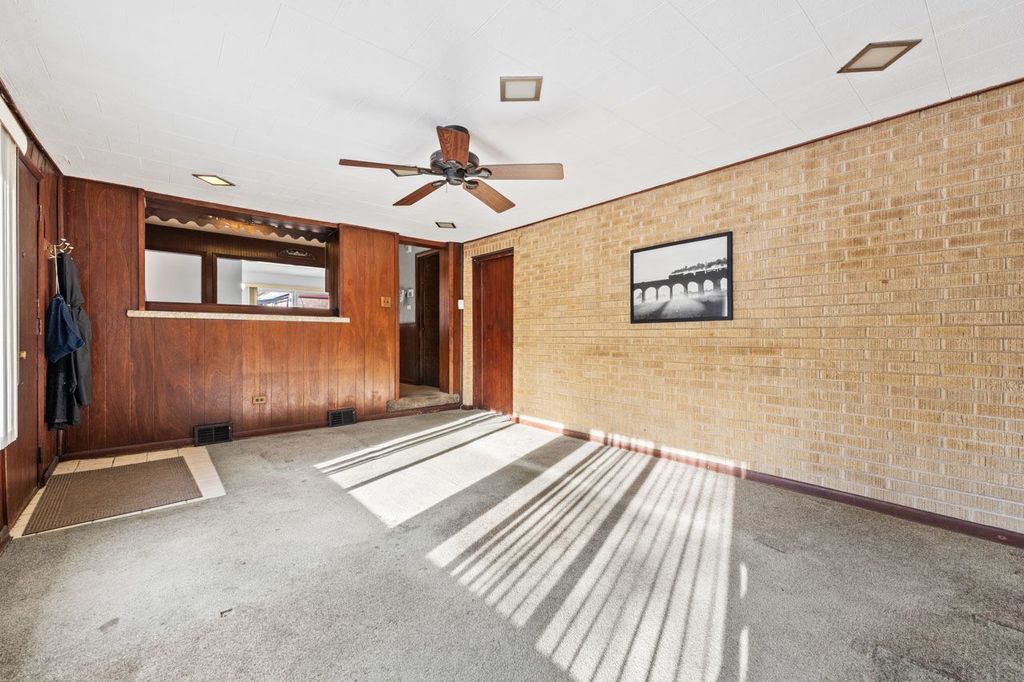 Welcome to 10113 W Palmer, this solid, well-maintained brick ranch and the great neighborhood! Spacious and charming, this home offers 3 bedrooms and 1 full bath, with an extra bedroom/office in the basement. The kitchen has dining space with a pass-through window to the family room, and the family room opens to a brick paver patio.... ready for BBQs! There are oak hardwood floors throughout the living room, dining room, and bedrooms. The full basement- which adds lots of space for hobbies, fitness equipment, or just relaxing- includes a unique, original log cabin-style rec room with a bar, perfect for entertaining. The attached garage offers the ease of coming and going while protected from weather, as well as extra storage. There's a huge fenced yard: 60' by 186'! And you'll enjoy peace of mind with the 14KW whole-house generator that provides ample power during storms or outages, and an active alarm system. Additional major updates have already been completed: new roof with ice dam shield in 2025; new furnace 2021; new A/C 2021. Close to shopping, dining, and everyday conveniences-this home truly has it all. This home is not located in any flood zones.
