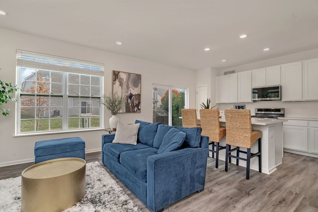 Welcome to the highly sought-after Greywall Club community in Joliet! This beautiful 3-bedroom, 2.5-bath end-unit townhome has so much to offer. Step inside to find a spacious great room with plenty of natural light and ample storage. The kitchen features stainless steel appliances, gorgeous quartz countertops, abundant cabinet space, and a large island-perfect for cooking and entertaining. The main floor living room offers great flexibility and can easily be used as an office or den if desired. Upstairs, you'll find a generous primary suite with a private bath and dual sinks, a spacious loft perfect for a second living area or playroom, plus two additional bedrooms with ample closet space and a full hall bathroom. Enjoy the convenience of second-floor laundry and relax outdoors on the private patio. EV charger for Tesla in garage! Located within the desirable Plainfield school district-schedule your showing today!