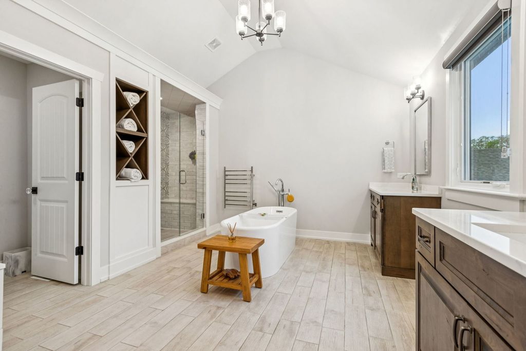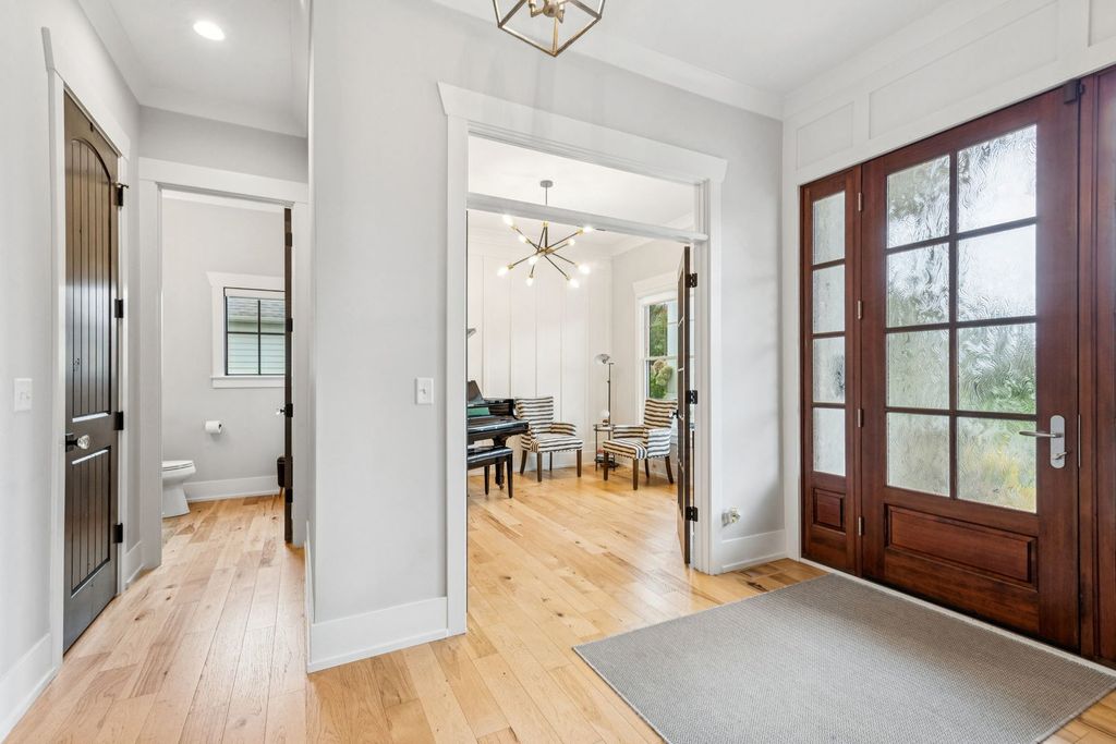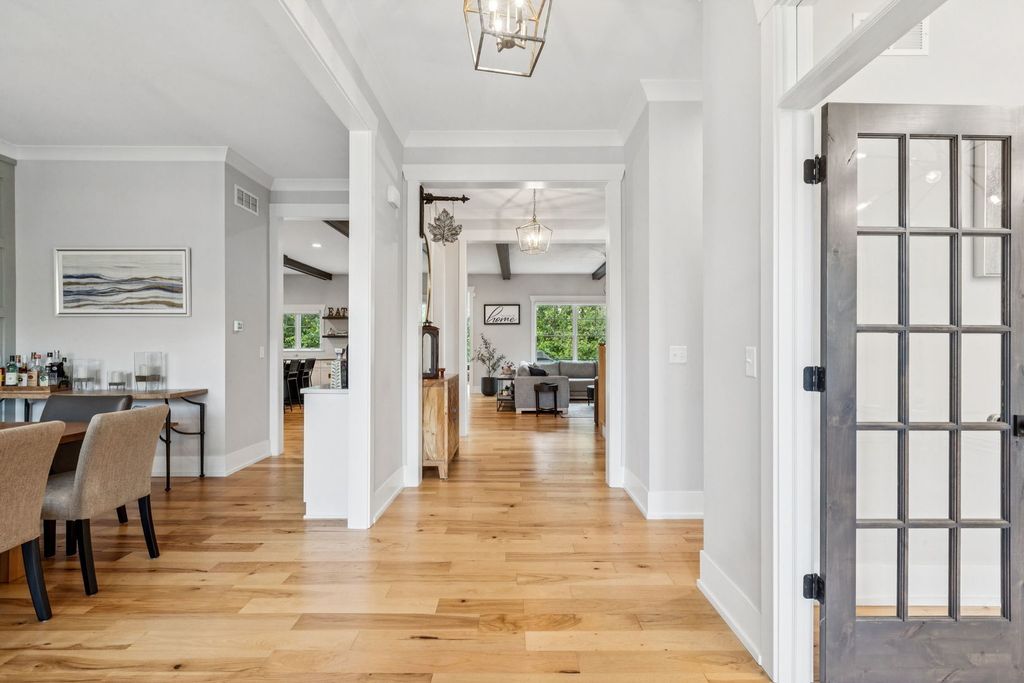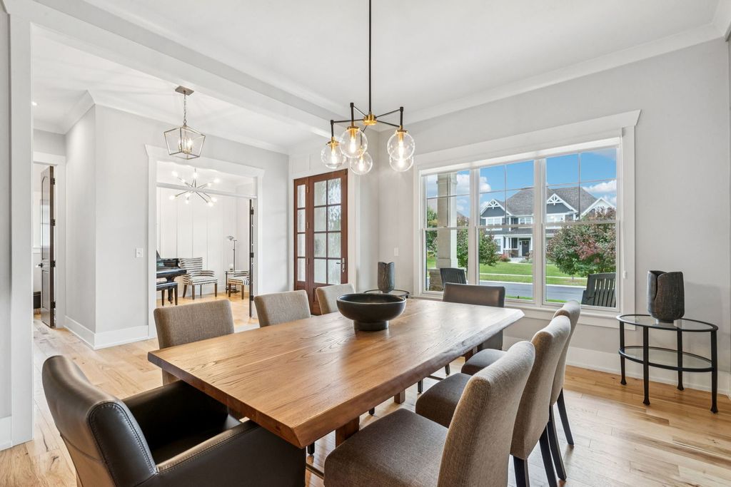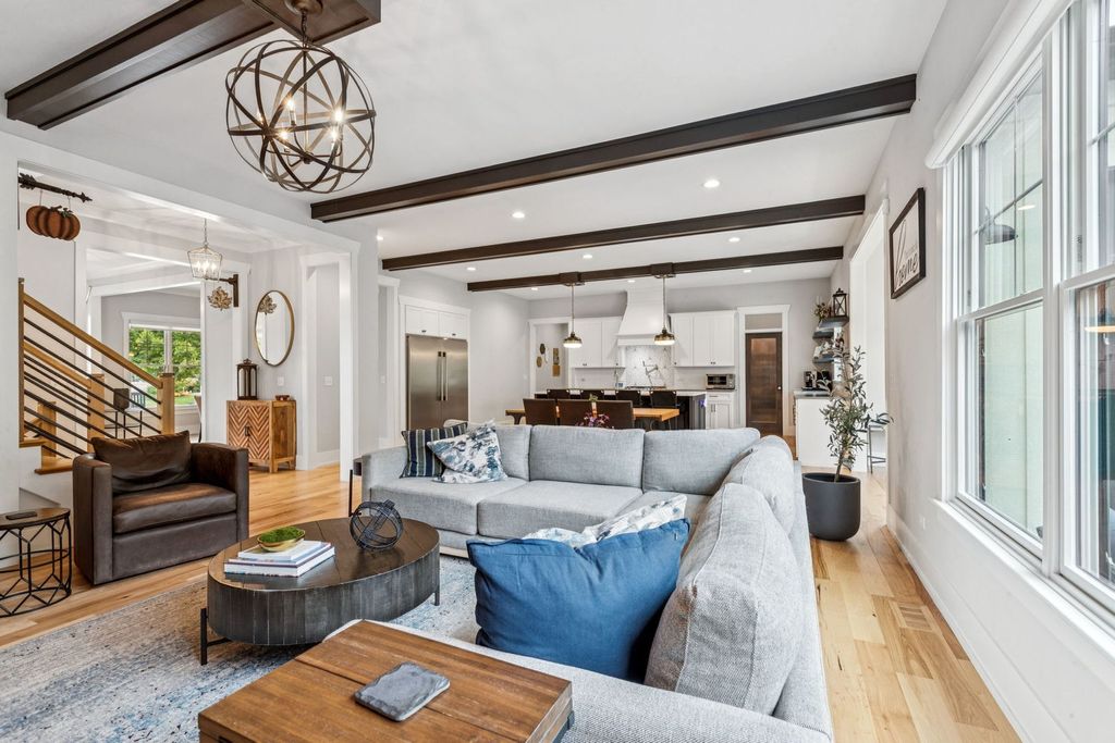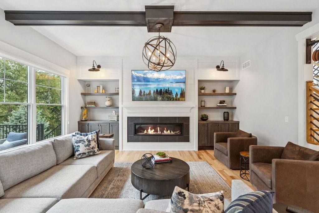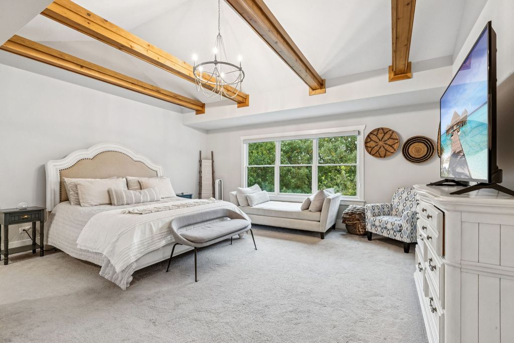 Better-than-new DeMarcco-built modern farmhouse located in the sought-after Highland Woods community of Elgin, Illinois. Built in 2020 with timeless craftsmanship and a fresh, modern design. The main level features beamed ceilings, rich hardwood flooring, and an open layout ideal for entertaining and everyday living. The chef's dream kitchen is appointed with top-of-the-line appliances, custom cabinetry, and a spacious island that connects seamlessly to the dining and great room. A bright sunroom captures backyard views, while a private den provides the perfect home office space. Upstairs, the primary suite impresses with an amazing spa-style bathroom and generous walk-in closets. The walk-out lower level, finished in 2021, offers a large family/rec room with fireplace, wet bar, full bath, bedroom, and private office-ideal for guests or extended living. Energy-efficient Pella windows fill the home with natural light, showcasing every thoughtful detail. Residents of Highland Woods enjoy access to a pool, clubhouse, fitness center, parks, and walking trails, all within the highly regarded District 301 schools. A rare opportunity to own a home that perfectly blends modern comfort, luxury finishes, and community living.