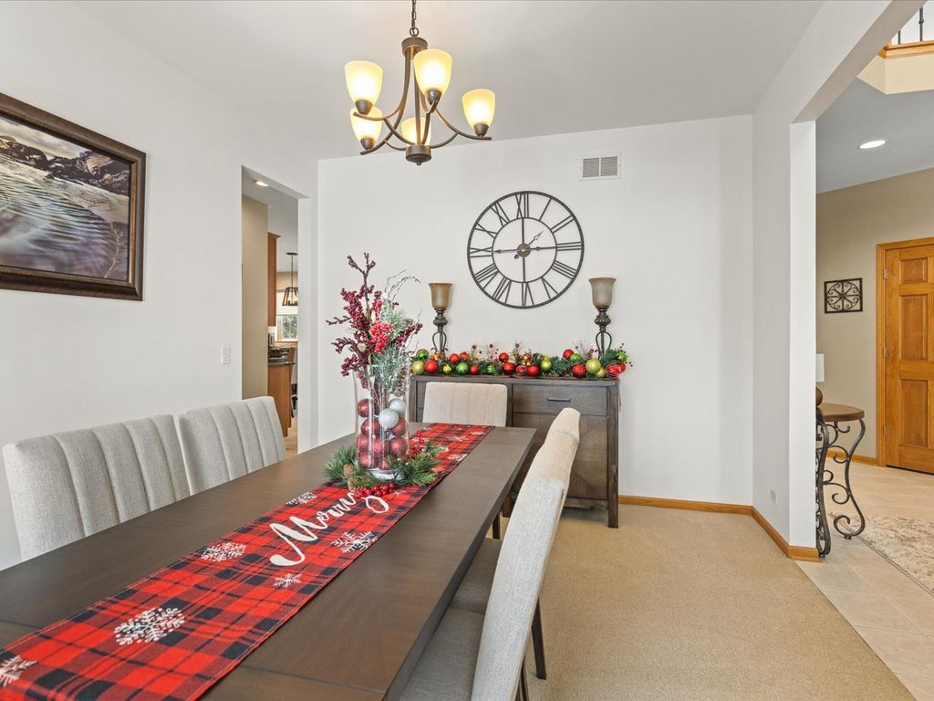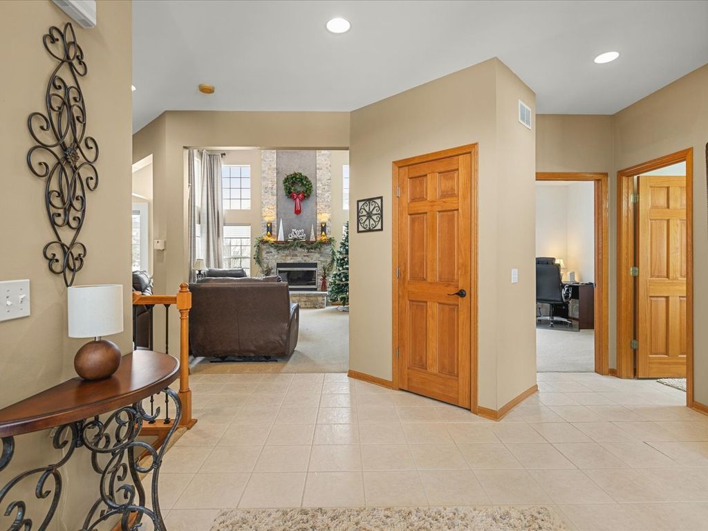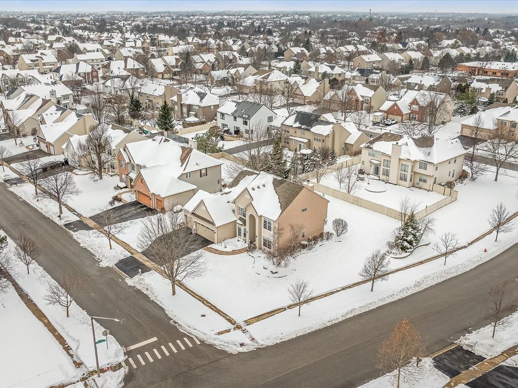This exceptional Kings Gate residence truly stands apart. Set on a premium, nearly half-acre corner lot, this beautifully maintained home offers the perfect blend of luxury, space, and everyday convenience-just 10 minutes from shopping, dining, and amenities, and within walking distance to an elementary school and expansive park with baseball fields, playgrounds, and tree-lined sidewalks. From the moment you step inside, you're welcomed by soaring ceilings and abundant natural light, creating a warm yet grand first impression. The heart of the home is the dramatic, completely redesigned stone fireplace (2024), anchoring the family room with timeless elegance and a cozy gas hearth-perfect for winter evenings as you settle into the new year. The chef's kitchen is both stunning and functional, featuring granite countertops, stone backsplash, stainless steel appliances, under-cabinet lighting, durable stone flooring, a large pantry, and generous space for entertaining. Recent upgrades include a new microwave (2024) and all-new interior lighting (2024), enhancing both style and ambiance throughout the home. Indoor living seamlessly transitions outdoors to a luxurious 600+ sq ft professionally built stamped concrete patio, complete with a fireplace and glamorous evening lighting-ideal for entertaining guests, stargazing, or enjoying peaceful sunsets. Convenience abounds with a main-level laundry room, a main-level bedroom, and a spotless 3-car garage with custom flooring, new drywall, paint, and tape (2024). The home is also equipped with a 200-amp electrical service and an underground fence system. Upstairs, you'll find three spacious bedrooms, including a serene primary suite with double vanities, a whirlpool tub, and separate shower, plus the option to create a fourth upper-level bedroom. A cozy loft-style reading or sitting area overlooks the family room and grand entryway. Additional recent updates include new banisters (2023), new windows in the guest bedroom (2024), and new dining room windows (2024). The fully finished basement provides exceptional additional living space-perfect for entertaining, a future bedroom, or a private retreat-along with excellent storage. Built to last with low-maintenance fiber cement siding, a newer roof (2015), and new furnace (2019), this home offers peace of mind along with luxury. With thoughtful upgrades, elegant finishes, and a highly desirable location, this is a rare opportunity to begin the new year in a home that offers style, comfort, and functionality-without compromise.