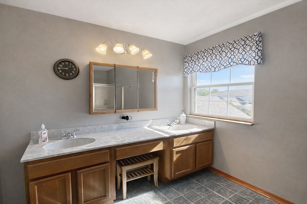Welcome to 8416 Stratford Drive in the highly sought-after Town Pointe subdivision of Tinley Park! This beautifully maintained 2-bedroom, 2.5-bath townhouse offers the perfect combination of comfort, convenience, and modern updates in one of the area's most desirable communities. Step inside to a bright and open main level featuring newer wood vinyl flooring that gives the space a clean, modern feel. The spacious living room flows seamlessly into the dining area and kitchen, making it perfect for both everyday living and entertaining. The kitchen offers ample cabinet space and overlooks the private patio, providing a great setting for morning coffee or relaxing in the evening. Upstairs, you'll find two spacious bedrooms including a beautiful primary suite with two closets featuring built-in organizers and a private bath. The second bedroom is generously sized as well, perfect for guests, a home office, or a nursery. A convenient second full bath completes the upper level for easy living. The finished basement adds valuable extra space for a family room, workout area, or recreation space, and includes new carpet installed in 2022 along with a dedicated storage area. Additional updates and amenities include a new washer and dryer (2023), a new roof (2024), and a heated garage, keeping your car warm and comfortable year-round. Enjoy maintenance-free living in a quiet and friendly neighborhood while being close to everything Tinley Park has to offer. The home is ideally located near Tinley Park's popular dog park, top-rated schools, and provides easy access to major highways and the 80th Avenue Metra Station-perfect for commuters. Whether you're a first-time buyer, downsizing, or simply looking for a move-in ready home in a great location, this Town Pointe townhouse is a must-see.