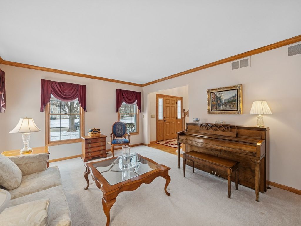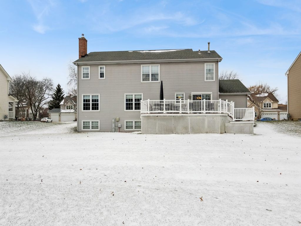 Welcome to this beautifully designed two-story home offering timeless style, generous living spaces, and exceptional functionality. A beautiful paver driveway and walkway create an inviting first impression, leading you through the custom built portico inside to a bright formal living room and an elegant formal dining room-perfect for entertaining. The heart of the home is the spacious kitchen, complete with a convenient butler's pantry and seamless flow into the warm, welcoming family room with gas fireplace. Spend bright mornings at the breakfast table just off the kitchen as well. Laundry is conveniently located between the kitchen and garage. Upstairs, you'll find well-appointed bedrooms and two beautifully remodeled bathrooms. An unfinished basement provides endless potential for future expansion-whether you envision a home gym, recreation area, workshop, or additional storage. At the back of the home, a large deck overlooks the yard and offers the ideal spot for relaxing, grilling, or gathering with friends (there is also storage under the deck!). The garage has extra storage space at the front and is coated with an epoxy coating. With its thoughtful layout and room to customize, this home is ready to be your perfect next chapter. Let your vision come to life!