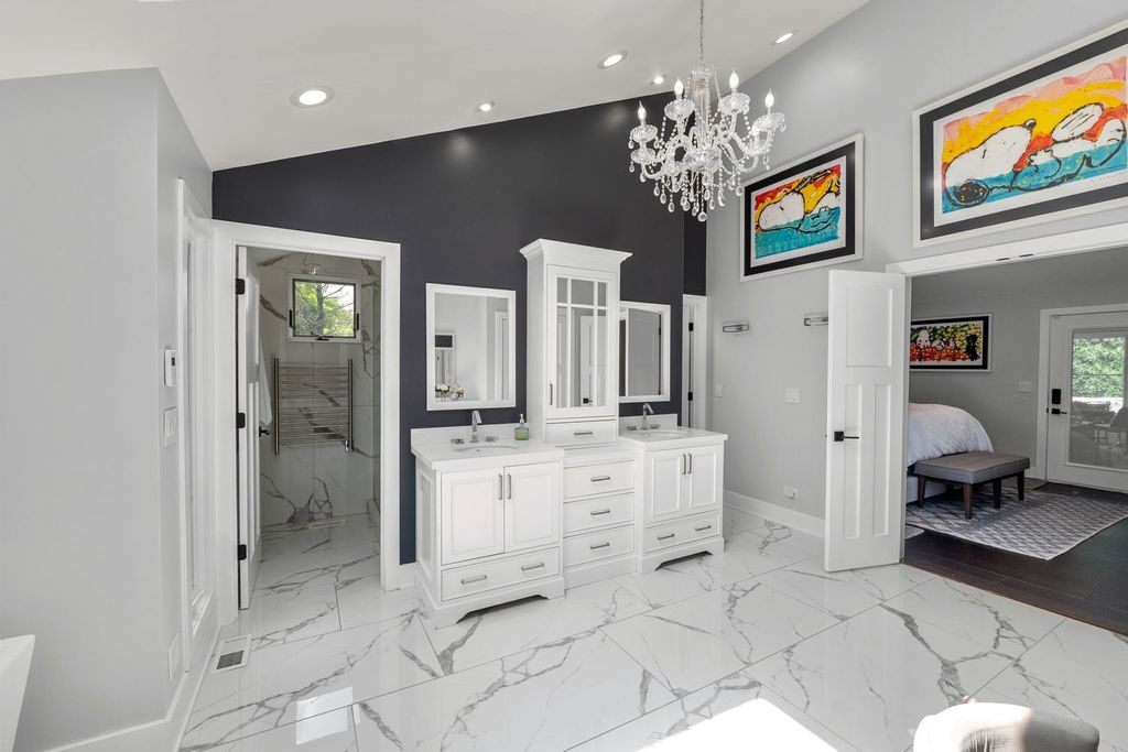 Experience the pinnacle of contemporary ranch-style living in this stunning Lake Forest home, beautifully situated on a lush two-acre oasis. Spanning over 4,000+ square feet, this residence has undergone remodeling in the past five years, creating an ideal environment for comfortable, single-level living. The master suite offers a generous spa-like bathroom and direct access to a cozy screened porch, conveniently located next to the outdoor hot tub. Perfectly designed for entertaining, the home features a grand two-story living room, a spacious chef's kitchen with an adjoining dining area, and a generous family room with a substantial coffee bar. Each main living area effortlessly transitions to a large entertainer's dream deck that overlooks the expansive backyard. Enjoy amenities like a fire pit, hot tub, built-in grill, and a putting green with designed chipping pads equipped with ball washers. Considering a pool? There's ample space, along with a large first-floor bathroom and entrance perfectly suited for a pool area. The flexible floor plan includes a versatile first-floor bedroom currently used as a gym. Upstairs, three additional bedrooms with modernized bathrooms provide picturesque views of the serene and private grounds. As you approach via the winding driveway, you'll be enchanted by the property's seclusion and expansive open spaces. Enjoy the oversized three car garage at the top of the driveway. Move in with confidence, knowing this home is impeccably maintained and updated. Don't miss the opportunity to make this Lake Forest gem your own!