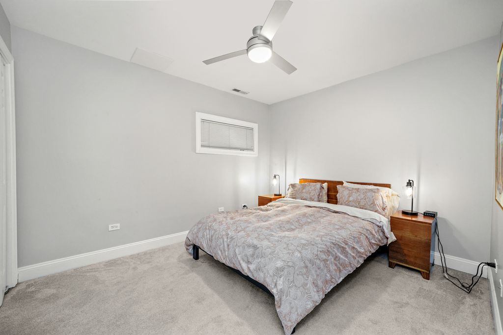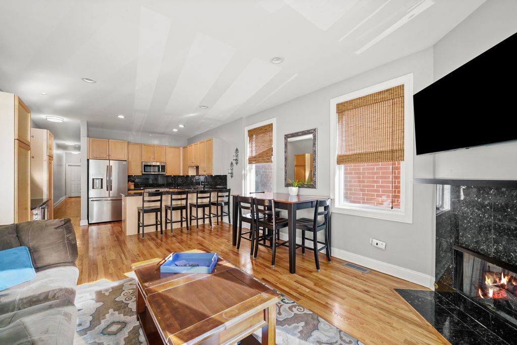 Fantastic Location! Spacious duplex-down featuring 4 bedrooms and 3 bathrooms. The home offers a large kitchen with granite countertops and high-end stainless steel appliances. Enjoy a generous family room with a full bar, perfect for entertaining. Additional features include central HVAC, in-unit washer and dryer, camera system, tankless water heater, hardwood floors, fireplace, and private balcony. Unit includes one brand-new carport space with a private rooftop deck (exclusive to Unit 1). Conveniently located near Fulton Market, West Loop, Costco, grocery stores, the United Center, public transportation (Green Line), and major highways. Just minutes from Union Park, which offers a pool, tennis courts, and more. Explore the property in 3D! Click the 3D button to take a virtual tour and walk through every detail.