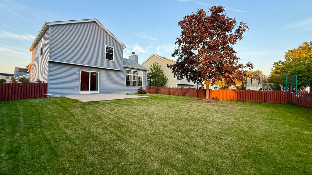 This well cared-for home in the Weslake Clubhouse Community features an eat-in kitchen, finished basement and fully fenced yard. Enjoy a spacious living room & dining room space with vaulted ceiling, fireplace and tons of natural light. Entertain in your eat-in kitchen with some stainless steel appliances and ample cabinet space. Second floor includes master bedroom suite with walk-in closet, separate sink/vanity space, and shared full bathroom along with two more bedrooms that include walk-in closets. Finished basement is perfect for a recreation room and/or office. Additional unfinished space in basement great for storage and workshop. Your backyard retreat includes a large concrete patio, fully fenced yard, and mature tree. Great location in sought-after Plainfield District 202 School District, close to I-55, public transit, retail and downtown Plainfield. Weslake amenities include community pool, clubhouse, fitness center, and tennis courts.