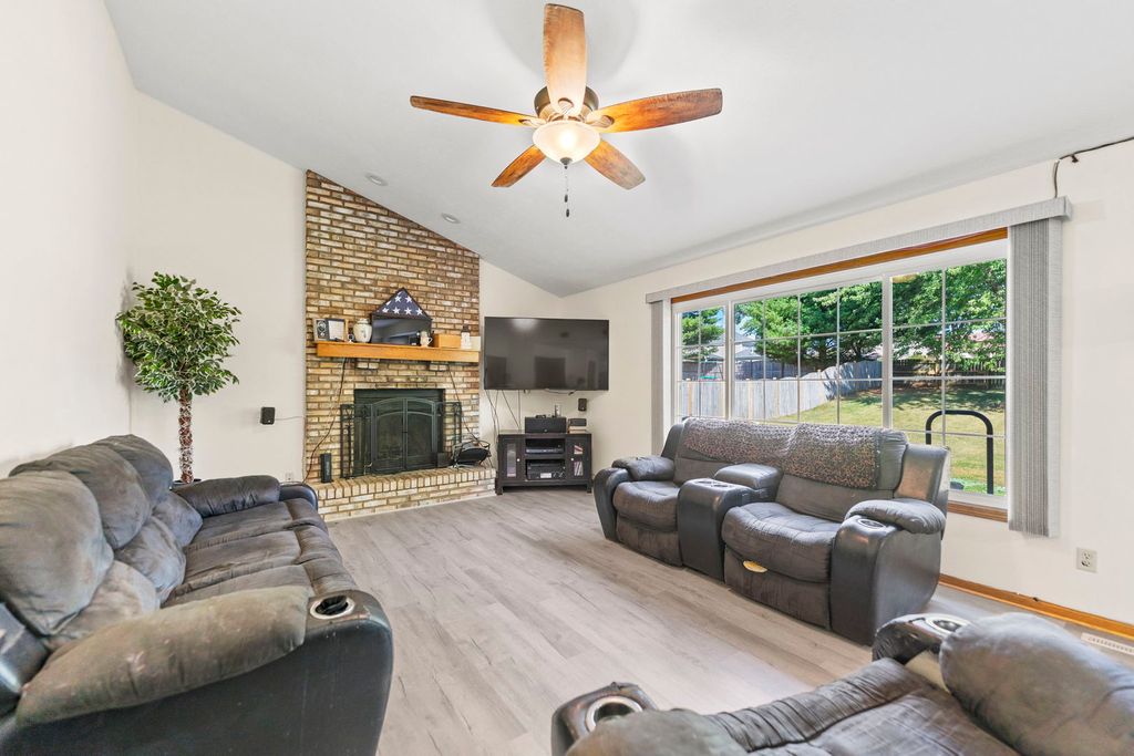 Better than new! So many updates and prime Cherry Valley location! This beautiful two-story home with finished basement offers approximately 3336 finished square feet of living space. Featuring 4 bedrooms and 2.5 baths, this home welcomes you with a charming front porch, front living room, and formal dining room. The large eat-in kitchen features granite countertops, painted cabinets, and newer appliances-refrigerator (2025), stove (2024), and dishwasher (2021) and opens to a light filled family room with a brick fireplace and vaulted ceiling. The main floor also includes first-floor laundry, an updated half bath, new LVP flooring, and fresh paint throughout. Upstairs are four bedrooms and two freshly updated bathrooms, along with new carpet on the stairs and hallway. The lower level is mostly finished, offering a rec room with new carpet and paint, a bonus room, office area, and plenty of storage space. Sliders from the kitchen lead to a freshly stained deck with newer deck boards and a nicely fenced yard-perfect for outdoor enjoyment. Oversized garage plus extra parking area. With updates including siding (2021), windows with transferable warranty and window treatments (2025), gutters (2025), sump pump, HVAC (2020), and water heater (2025), this home blends quality construction with modern comfort. Conveniently located in highly sought after Cherry Valley's Old Orchard neighborhood with low county taxes and easy access to I-90, Hard Rock, shopping, and so much more!