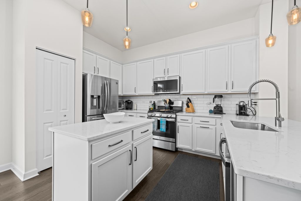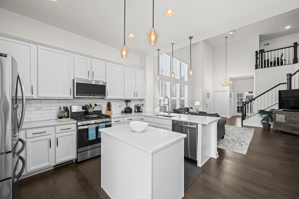 Welcome to 522 Peterson Court in Barrington This beautifully appointed end-unit home offers the perfect blend of modern design, exceptional construction quality, and effortless main-level living. Great finishes and thoughtful details are found throughout, showcasing an extremely well-built home designed for comfort and longevity. A dramatic two-story family room sets the tone, filling the space with natural light and highlighting the open floor plan and high-volume ceilings-ideal for both everyday living and entertaining. Hardwood floors flow throughout the main level, connecting the foyer, den, family room, kitchen, breakfast area, and powder room with warmth and continuity. The kitchen features quartz countertops, 42" white cabinetry, and stainless steel appliances for both style and functionality. The first-floor primary suite allows for true single-level living, supported by the convenience of a main-floor den and laundry room. Upstairs, two additional bedrooms and a spacious loft provide flexible space for a second living area, play zone, or home office. A full basement with bath rough-in offers incredible potential for future customization. Located in a nice, safe, and quiet neighborhood, this home is close to the fire station, police, top-rated schools, downtown Barrington, and provides quick access to I-90 for an easy commute. A rare combination of quality craftsmanship, a desirable layout, and a prime location-522 Peterson Court is ready to welcome its next owner.
