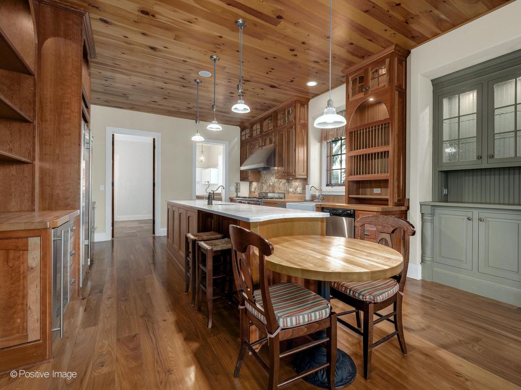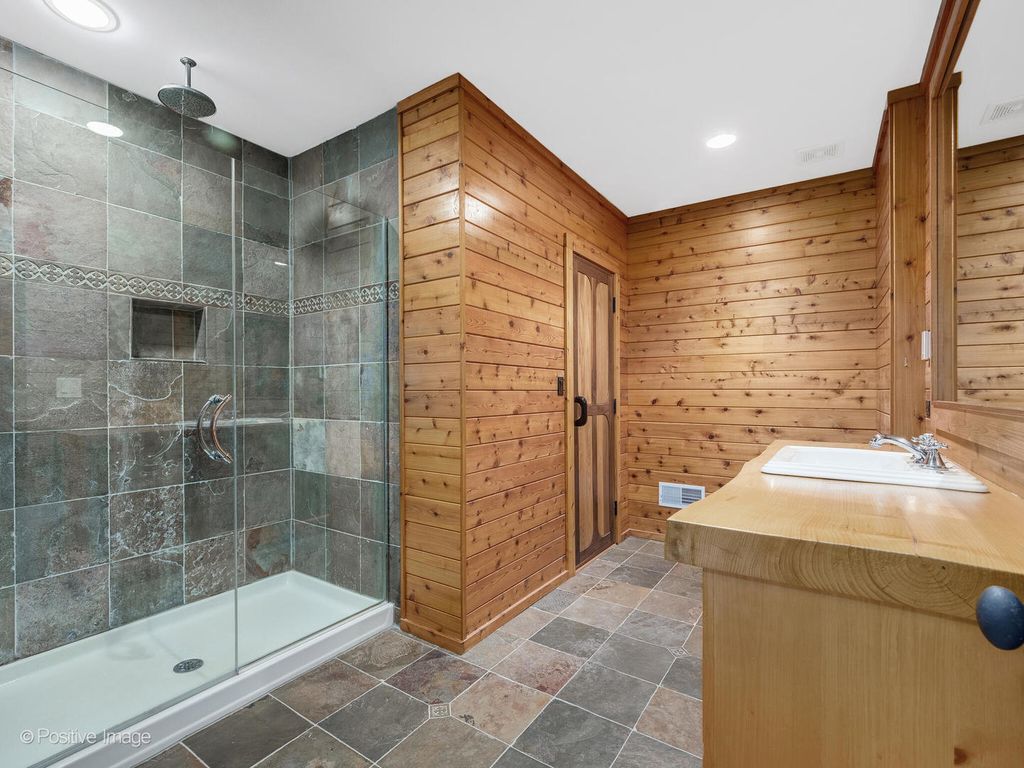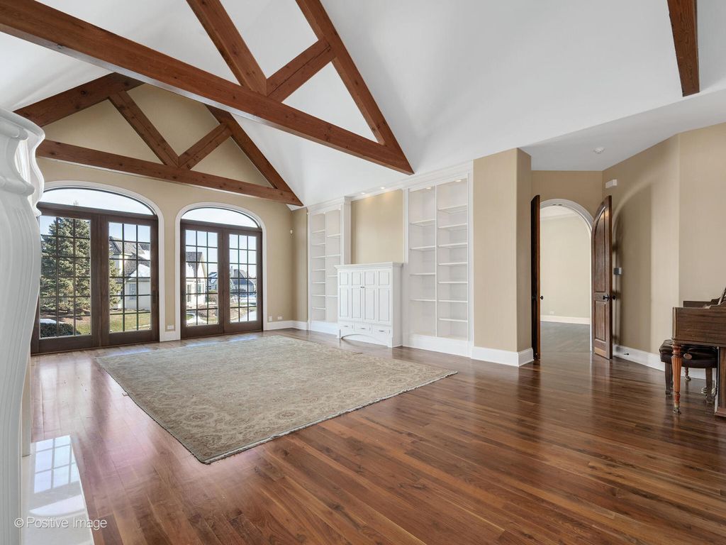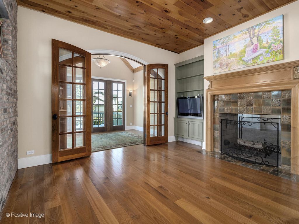 Callahan Builders selected this premier water view lot to build a family member an exceptional home. Incredible woodwork, solid wood doors, beautiful cabinetry, imported stone, exceptional finishes. Desirable floor plan with first floor master suite, rich paneled library/office with custom wood cabinetry and bookshelves, elegant dining room with gorgeous built in cabinetry and beautiful chandelier. Vaulted great room with thick reclaimed antique beams and wood trusses, oversize see-through woodburning fireplace with gas starter that has a custom mantle and stone hearth, great custom media cabinet and loaded with natural sunlight. Warm, inviting kitchen well-appointed with Wolf range, Subzero, freezer drawers, warming drawer, 2 dishwashers, wine cooler, generous custom cabinetry, Carrera marble and butcher block counters and expansive center island. Enjoy a wonderful keeping room/ breakfast room with fireplace and a sunroom that provides an additional workspace and opens to a newer deck. Spacious first floor master bedroom with newer hardwood floors, double walk-in closets - one with laundry area. Gorgeous marble master bath, double vanity with marble counters, and huge walk-in marble shower. Second floor offers two bedroom suites and a lovely sitting area. Incredible lower level with large English windows. Everyone's favorite place because of the theater room, 37 x 27 recreation room with great bar including sink, refrigerator, dishwater and wine room with additional wine cooler, fourth bedroom with great paneling and a full bath with shower and sauna. Some additional features include cedar closet, newer HVAC 2022, 2014 Generac whole house generator, and 2023 complete new Bravia Tile roof ($125,000). Forest Gate offers full 24-hour security gate, a desirable maintenance free lifestyle, and good Oak Brook taxes. Previews and showings are easy to accommodate.