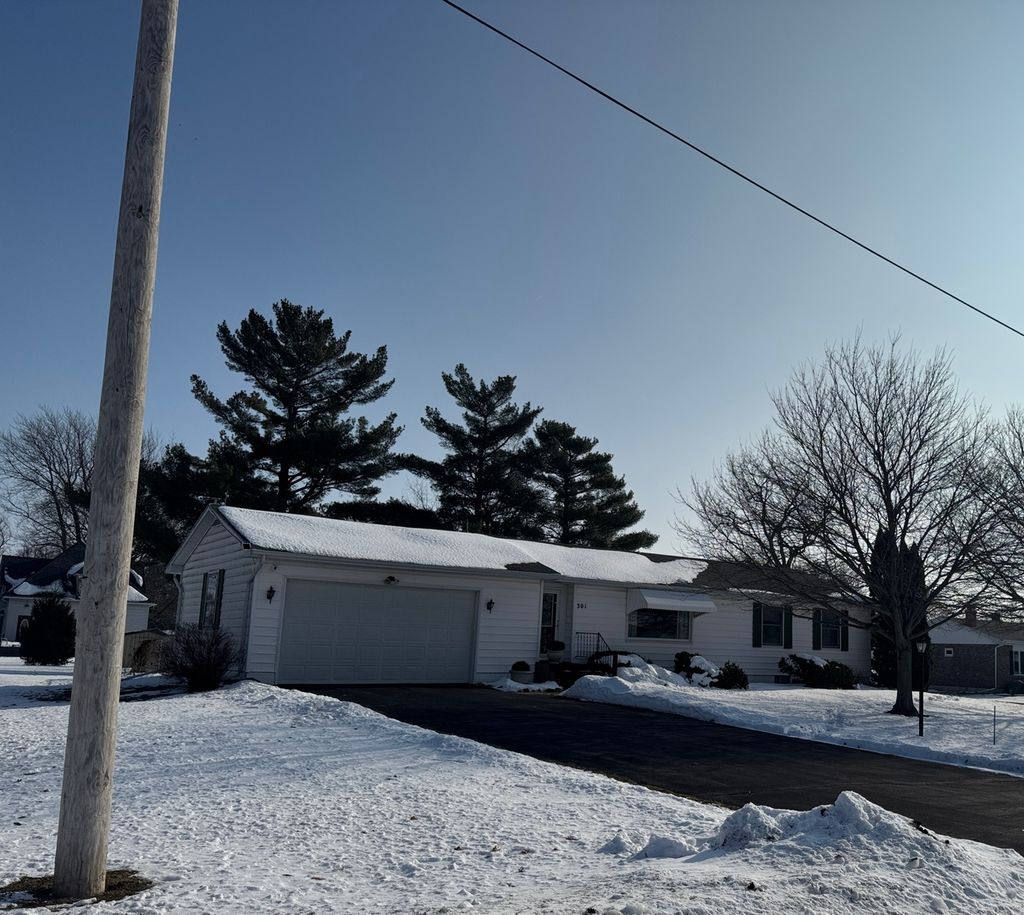 This charming 3-bedroom, 1-bath ranch sits on three spacious lots and offers a warm, inviting layout with beautiful wood floors throughout. The kitchen and dining area flows seamlessly to a large sliding door that leads to the back deck, perfect for relaxing or entertaining. A full basement with laundry provides ample storage and flexibility, while all appliances remain with the home (though not warranted). Additional features include a large 2-car garage, central air, electric heat with individual room controls, a pantry, ceiling fans, light fixtures, curtains, and rods. For added peace of mind, the home is equipped with a gas Generac generator, lightning rods, and a storage shed. Small fenced in area for pets. A water heater is also included. Home being sold As-Is. Call today to view this home!