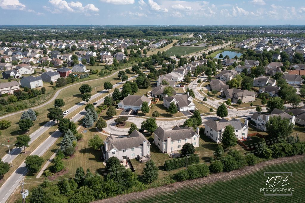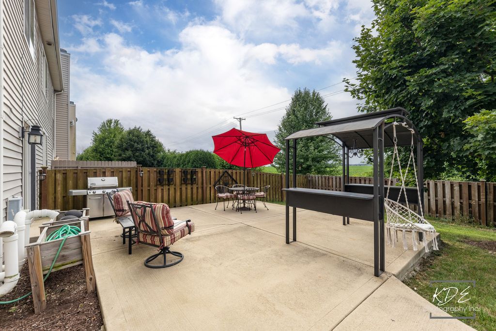 Fantastic END Unit/Duplex on a cul-de-sac, 3 bed, 2.1 bath, full basement, 1972 Square Feet plus the Basement! Beautiful private yard with sunset views from your large patio....Not your typical townhouse backyard and patio. You can even fence the yard(2 sides already fenced)! Lovely Family Room has wood burning fireplace with gas starter. Spacious Kitchen with NEW quartz counters and an Island with seating, closet pantry. Generous Eating Area with extra cabinets and built in serving counter/buffet, overlooking the patio. Formal Dining Room(Being used as an office now), Powder Room and Laundry Room round out the main level. Second story has three bedrooms and two full baths. Primary Suite has vaulted ceiling, walk in closet, ensuite bathroom with double sinks, soaking tub, separate shower. Finished Basement has three Bonus Rooms/Flex Space for Guests, Entertaining and Extra Storage. Close to Springbank Aquatic Center, Downtown Plainfield, restaurants, shops, recreation paths. Plainfield North HS. LOW HOA includes snow removal & lawn care. Lots of NEWS: Quartz counters/Sink/Disposal/Kitchen Plumbing 2025, Furnace 2024, Water Heater 2020, Dishwasher/Washer/Dryer new in last 2 years, all new toilets in 2024.