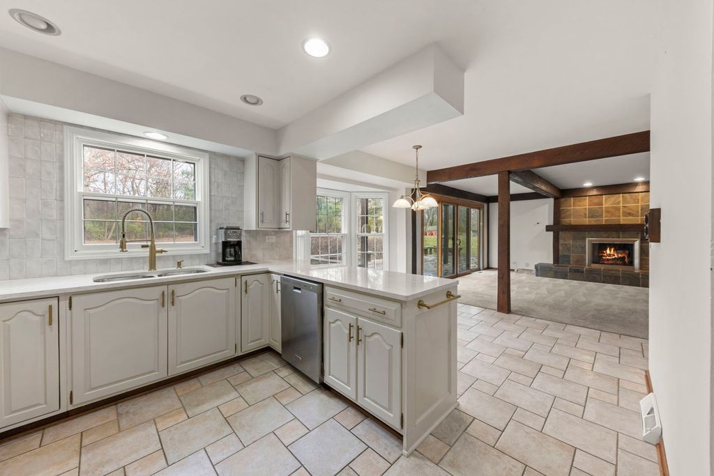 Nestled on nearly an acre of lush land, this stunning five-bedroom residence offers an exceptional blend of luxury and comfort. Step inside to discover a thoughtfully designed layout featuring a first-floor bedroom, ideal for guests or an office. Enjoy 4 elegant fireplaces strategically placed throughout the home, creating warm and inviting spaces for gatherings and cozy evenings. The expansive primary suite is a true retreat, complete with its own private deck that overlooks a large, secluded yard. Relax in the sitting area, warmed by a fireplace, as you take in the serene views of your expansive outdoor oasis. The full finished basement adds significant living space, perfect for entertainment, equipped with a wet bar and fireplace. All new exterior doors enhance the home's curb appeal and energy efficiency. Many updates have been done to the home to ease the expense in the future.