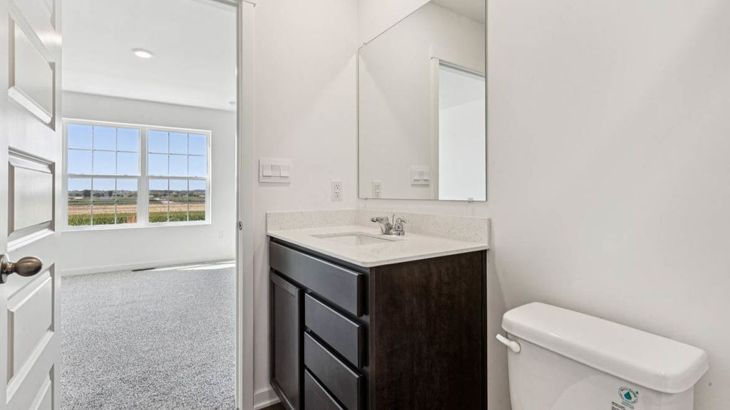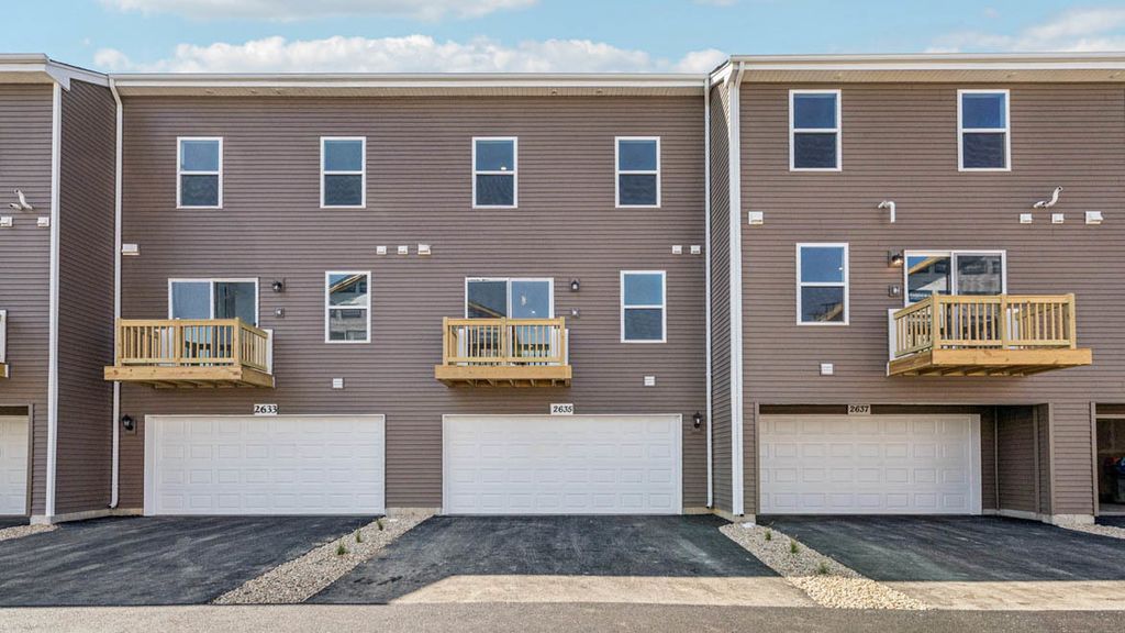 Find yourself at 917 Briar Glen Ct in Hampshire, Illinois, a beautiful new home in our Prairie Ridge community. This townhome is ready for a spring move-in! Homesite includes a fully sodded yard that is maintained throughout the year as well as snow removal in the winter. This McKinley townhome plan offers 1,579 sq ft of living space with 3 bedrooms and 2.5 baths, and a finished flex room. Walking up to the main level, you will find this home's open concept living space. The kitchen overlooks both the front dining and back great room areas, making it the ideal space to entertain. Step outside onto your balcony, relax and enjoy your morning coffee. Additionally, your kitchen features designer soft-close cabinetry, a spacious island with quartz countertops, and pantry. Walking upstairs, enjoy your private get away with your large primary bedroom on its own side of the second floor with en-suite bathroom containing a raised quartz vanity and walk in closet. Enjoy the convenience of a second-floor laundry, the second bedroom, loft, and a full second bath. Also, included in this amazing townhome is a finished lower-level bonus room. Great for an at home office, game room, workout space, etc. Luxury vinyl plank flooring throughout the kitchen, bathrooms and laundry. All Chicago homes include our America's Smart Home Technology. Photos are of a similar home and model home. Actual home built may vary.