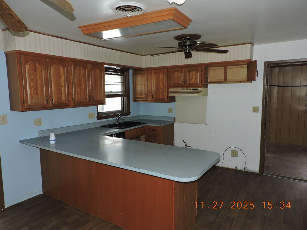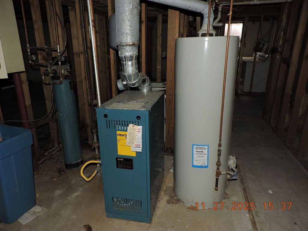 The all brick exterior makes this house a great investment with lasting value. A heated sun room (with skylights!) is easily used for at least 3 seasons. The L-shaped kitchen has modern cabinets, a black ceramic sink and dishwasher with laminate floors. New carpet has been laid in the bedrooms and living room. The garage is paneled for more insulation. And then the work begins. Both bathrooms need renovation. The condition of the boiler is unknown as the heat registers in all rooms has been removed. The basement was finished but it appears the basement flooded. All drywall is gone but studs and roughed-in bathroom remains. A terrific winter project! And the price is right.
