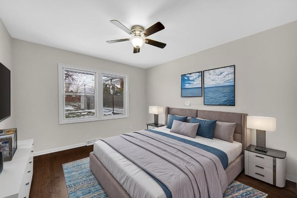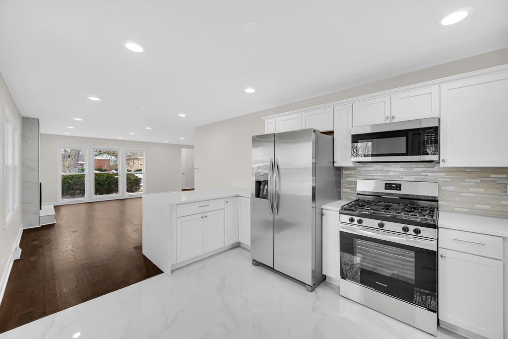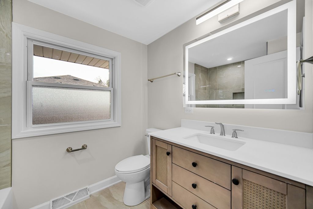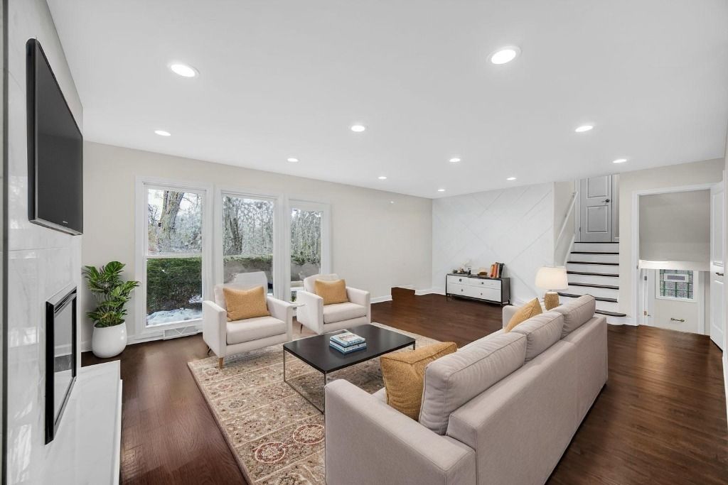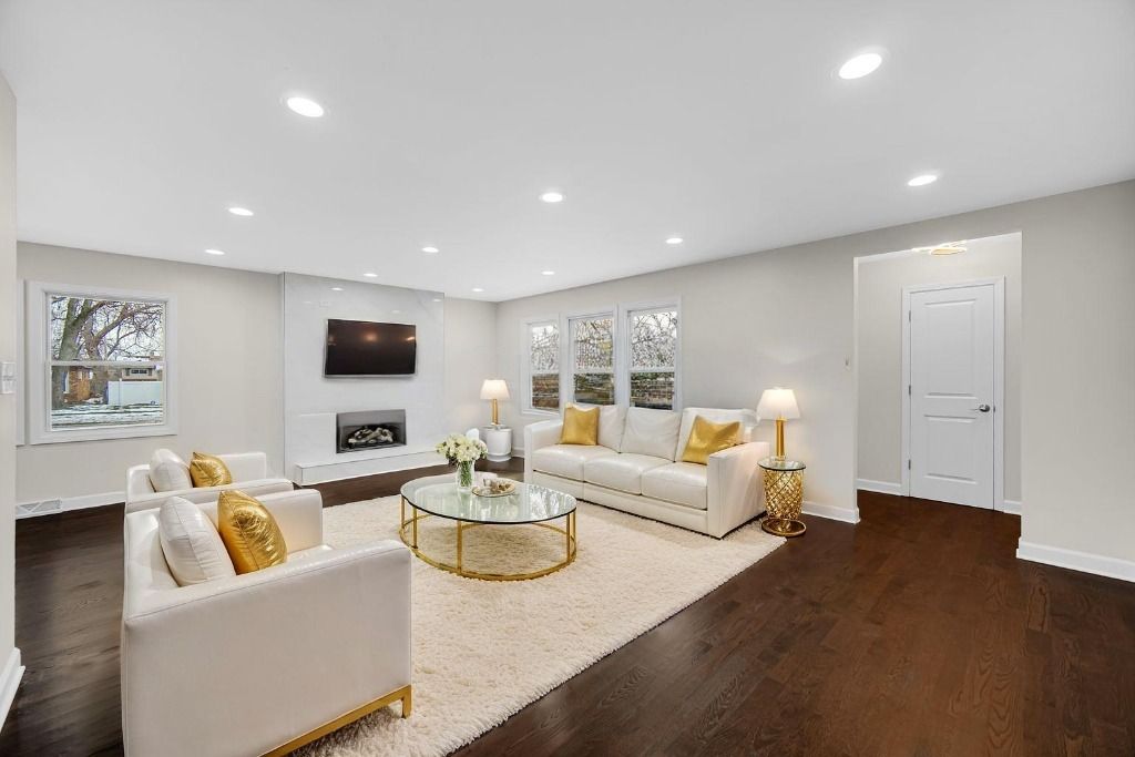 Showcasing a beautifully renovated split-level home nestled on a hilly, oversized corner lot in the sought-after Pottawatomie Hills of Hazel Crest. This home features a newly designed open floor plan and has been freshly painted throughout. Major updates include electric, plumbing, and a Trane HVAC system. Enjoy oak flooring, dozens of newly installed recessed lights, and a striking fireplace that anchors the living space. The gourmet kitchen offers white Shaker cabinets, quartz countertops, a glass backsplash, and marble flooring. Both bathrooms have been completely redesigned with built-in showers and LED backlit vanity mirrors. The lower-level recreation space is ideal for entertaining, while the fourth-level bedroom or office adds flexibility. A long side drive provides parking for up to four cars. Easy to show with immediate occupancy upon closing-this one won't last.