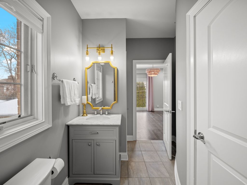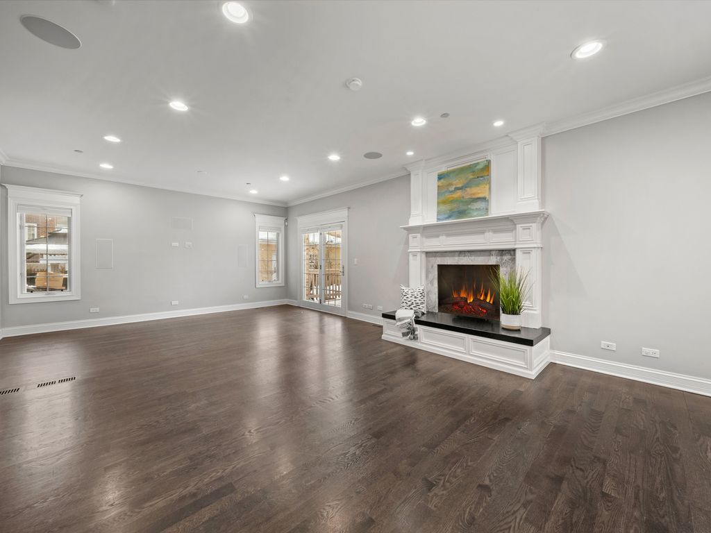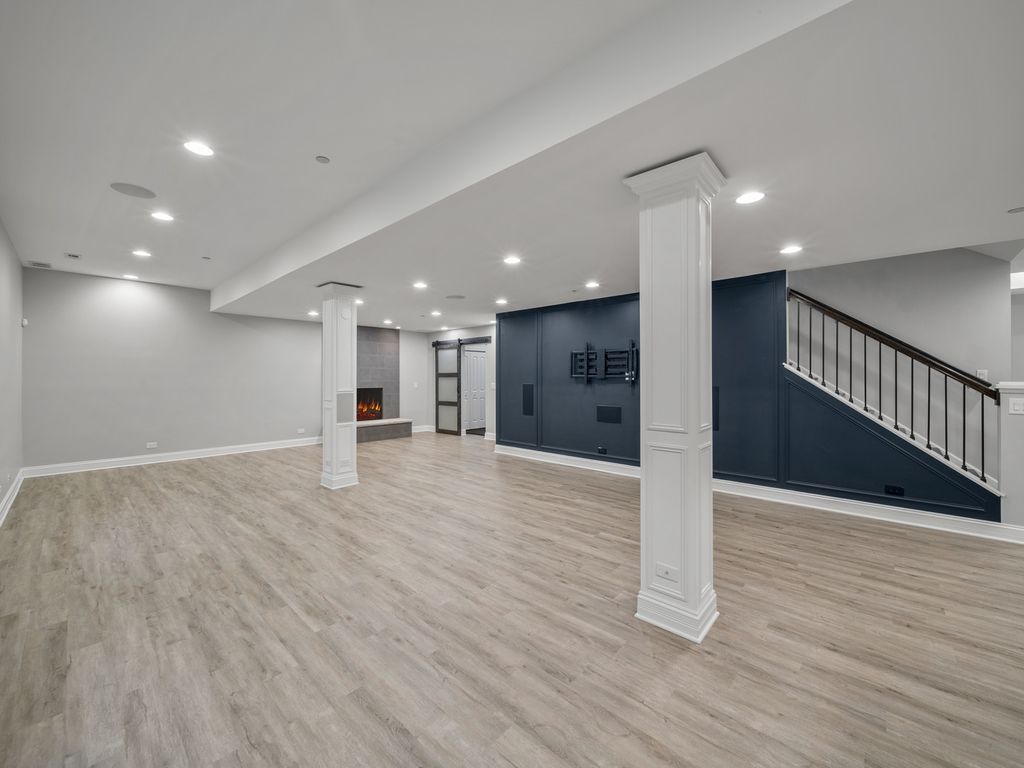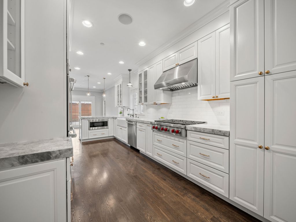 A masterclass in modern craftsmanship and timeless design, this newer-construction residence unfolds with effortless sophistication across three finished levels, introduced by a dramatic two-story foyer with a sculptural curved staircase and crystal-accented globe chandelier that sets an unmistakably elevated tone. Light-filled formal living and dining rooms, each trimmed with refined millwork, hardwood flooring, accent lighting, and multiple Juliette balconies create an elegant backdrop for entertaining. The heart of the home is a magazine-worthy chef's kitchen clad in quartzite, marble, and semi-custom cabinetry, anchored by Sub-Zero and Wolf appliances, a Shaws fireclay sink, and an extended breakfast bar that blends seamlessly into the breakfast room. The adjacent family room extends the home's chic yet inviting energy with a custom quartzite-surround fireplace, surround sound, and French doors opening to the newly replaced deck. A full bath and heated-floor laundry/mudroom complete the main level with thoughtful functionality. Upstairs, the sanctuary-like primary suite indulges with a private Juliette balcony, custom built-ins, a generous walk-in closet with custom built ins, and a spa-level bath featuring heated marble-inlay floors, dual quartz vanities, LED mirrors, a rainfall shower with body sprays, heated towel bar, and a standalone soaking tub. Three additional bedrooms-two with Juliette balconies-include an ensuite, a semi-ensuite, and beautifully curated finishes throughout. The fully finished lower level elevates leisure to a cinematic experience with an expansive recreation room boasting a gas fireplace, home theater wired for 11.4.2 surround sound, a designer bar with hammered stainless sink, mirrored backsplash, dual refrigeration, and seating for four, alongside a dedicated exercise room, fifth bedroom, full bath, and ample storage. Enhanced with smart-home controls, upgraded mechanicals, 200-amp service, sump with backup, and a long list of thoughtful updates-including roof (2016), primary suite and kitchen updates, redesigned primary bath, laundry and fireplace enhancements, and a comprehensive lower-level renovation-this residence delivers turnkey luxury with the aesthetic finesse of a bespoke custom build. Perfectly situated in a highly walkable neighborhood near top-rated schools, popular restaurants, and everyday conveniences, this rare offering is where architectural intention, modern amenity, and elevated living converge in perfect harmony.