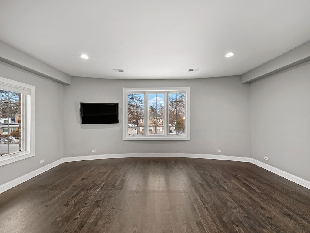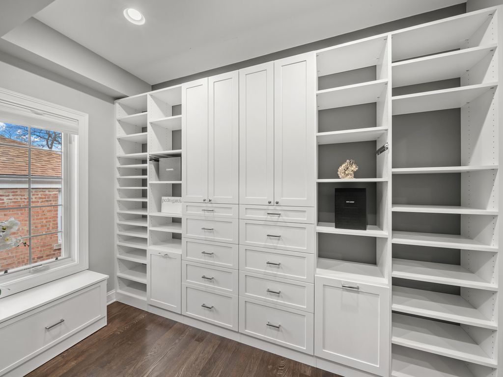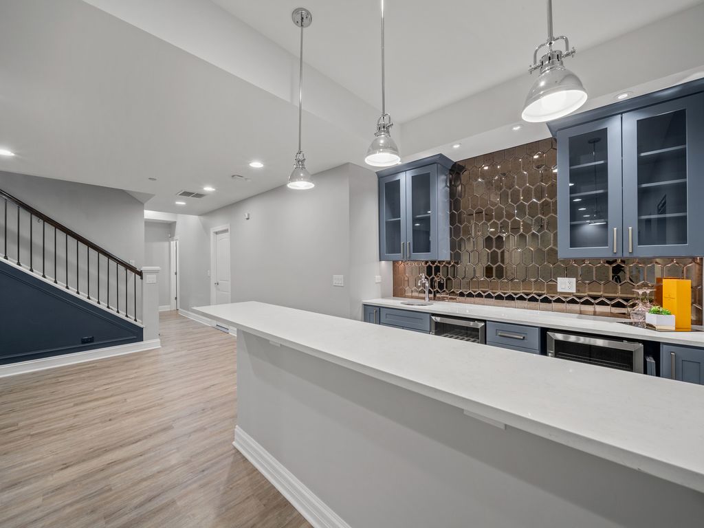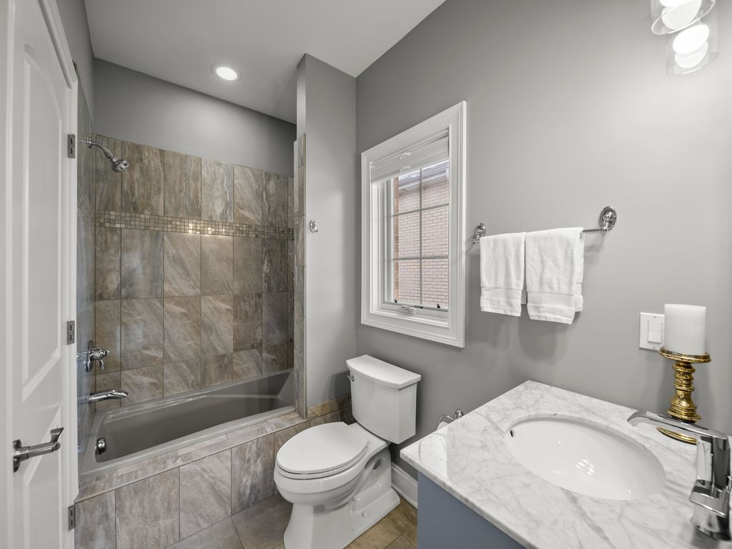 A masterclass in modern craftsmanship and timeless design, this newer-construction residence unfolds with effortless sophistication across three finished levels, introduced by a dramatic two-story foyer with a sculptural curved staircase and crystal-accented globe chandelier that sets an unmistakably elevated tone. Light-filled formal living and dining rooms, each trimmed with refined millwork, hardwood flooring, accent lighting, and multiple Juliette balconies create an elegant backdrop for entertaining. The heart of the home is a magazine-worthy chef's kitchen clad in quartzite, marble, and semi-custom cabinetry, anchored by Sub-Zero and Wolf appliances, a Shaws fireclay sink, and an extended breakfast bar that blends seamlessly into the breakfast room. The adjacent family room extends the home's chic yet inviting energy with a custom quartzite-surround fireplace, surround sound, and French doors opening to the newly replaced deck. A full bath and heated-floor laundry/mudroom complete the main level with thoughtful functionality. Upstairs, the sanctuary-like primary suite indulges with a private Juliette balcony, custom built-ins, a generous walk-in closet with custom built ins, and a spa-level bath featuring heated marble-inlay floors, dual quartz vanities, LED mirrors, a rainfall shower with body sprays, heated towel bar, and a standalone soaking tub. Three additional bedrooms-two with Juliette balconies-include an ensuite, a semi-ensuite, and beautifully curated finishes throughout. The fully finished lower level elevates leisure to a cinematic experience with an expansive recreation room boasting a gas fireplace, home theater wired for 11.4.2 surround sound, a designer bar with hammered stainless sink, mirrored backsplash, dual refrigeration, and seating for four, alongside a dedicated exercise room, fifth bedroom, full bath, and ample storage. Enhanced with smart-home controls, upgraded mechanicals, 200-amp service, sump with backup, and a long list of thoughtful updates-including roof (2016), primary suite and kitchen updates, redesigned primary bath, laundry and fireplace enhancements, and a comprehensive lower-level renovation-this residence delivers turnkey luxury with the aesthetic finesse of a bespoke custom build. Perfectly situated in a highly walkable neighborhood near top-rated schools, popular restaurants, and everyday conveniences, this rare offering is where architectural intention, modern amenity, and elevated living converge in perfect harmony.