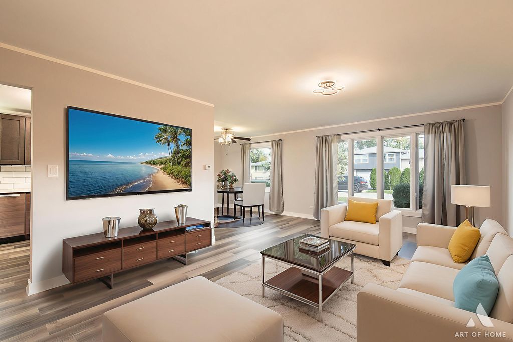 Welcome to this amazing, fully renovated, split level home with 1,700 sq ft of living space with 3 bedrooms, 2.5 bathrooms, and a 2 car detached garage with an oversized driveway located in the hearth of Worth. Main level presents a large living room, cozy dining room, and a great kitchen with gray shaker cabinets, quartz countertops, ceramic backsplash, and stainless steel appliances. Upper level offers private master suite with a gorgeous full bathroom and a spacious closet, 2 good sized bedrooms, and another beautiful full bathroom. Lower level features an enormous family room, half bath, and a laundry room. It has elegant light fixtures and wood laminate floors throughout. Large backyard offers a stained wooden deck that is perfect for entertaining guests. It also has a new plumbing, new electrical system, new A/C, new water heater, new windows, new siding, new fascia, newer furnace, and newer roof. All renovations completed with permits and Village of Worth requirements. Conveniently located near I-294, Metra station, schools, parks, shops, restaurants, and entertainment. Schedule your showing today before it's gone!