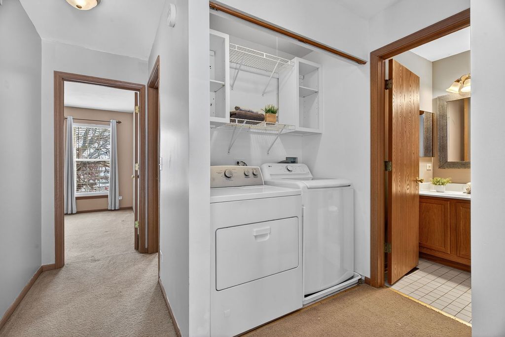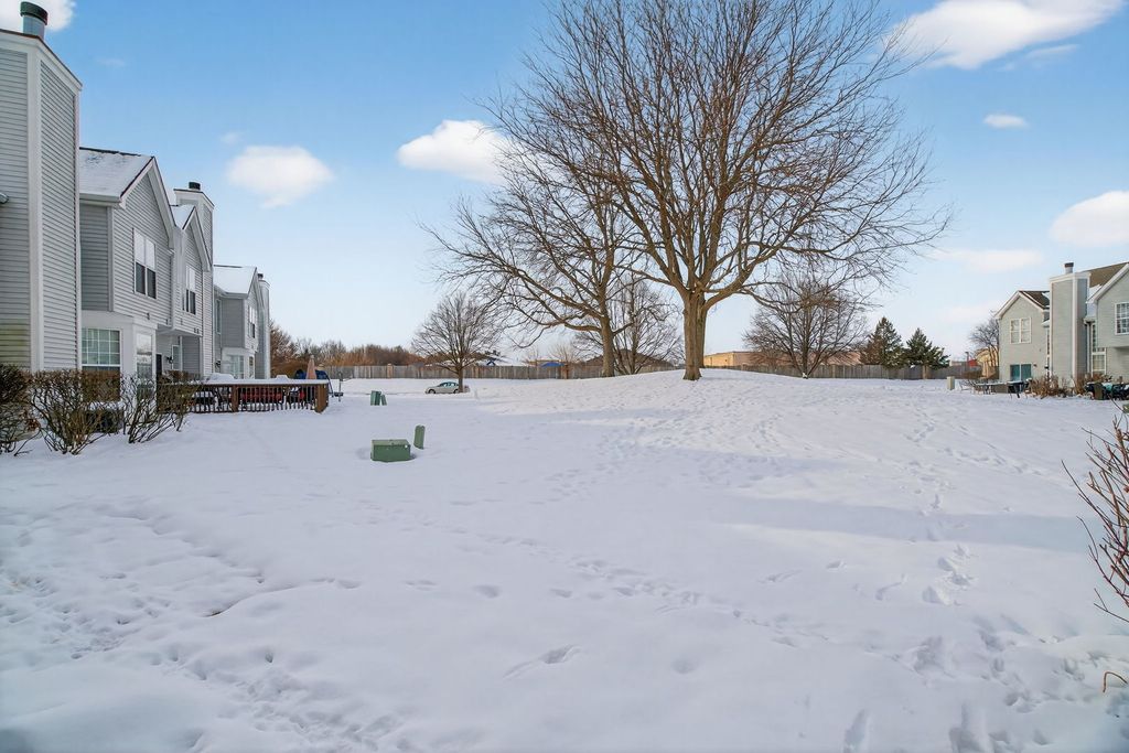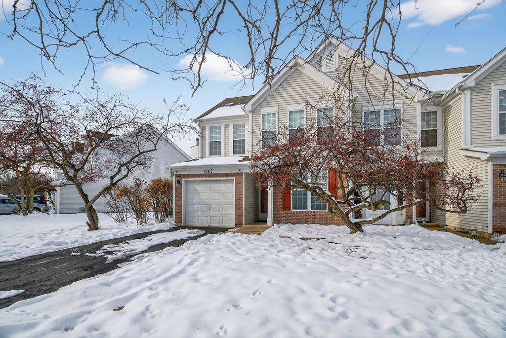 This spacious end unit features three bedrooms and two and a half bathrooms. The welcoming foyer leads to the front living room, while the two-story family room offers views of the bright dining area. The functional kitchen provides ample cabinetry, generous counter space, and modern appliances. A convenient second floor laundry adds practicality. The primary suite includes a private bathroom, complemented by two additional well-sized bedrooms that share a hall bath. Ideally situated with extensive green space, this property is close to schools, parks, shopping, and more