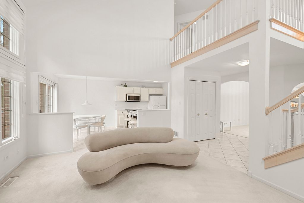 Welcome to this beautifully maintained townhome where abundant natural light, soaring ceilings, and thoughtful upgrades create a warm and inviting living experience from the moment you walk in. Enjoy the outdoor space on your very own deck and relax to the sounds of nature. Designed for comfort and style by the original owner, this home offers an open layout, quality finishes, and updates that make it truly move-in ready. Peace of mind comes from major mechanical updates, including a new furnace and AC installed in 2025. The impressive living room features dramatic two-story ceilings and expansive windows enhanced with premium Hunter Douglas custom blinds. A cozy gas fireplace anchors the space, while two brand-new skylights installed in 2025-each with remote-controlled blinds-fill the room with even more sunlight. The formal dining room continues the airy feel and also features Hunter Douglas blinds, offering both beauty and entertaining space. The spacious eat-in kitchen is designed for everyday convenience and gatherings, featuring porcelain tile flooring, corian counters, a breakfast bar, pantry, and updated appliances including a new refrigerator (2025) and Samsung stainless steel microwave and electric range (2024). A sliding door opens directly to the deck, creating a seamless indoor-outdoor flow for morning coffee, grilling, or relaxing. The main level also offers a well-appointed powder room and a convenient main-floor laundry room, adding to the home's functionality. Upstairs, the primary suite serves as a peaceful retreat with vaulted ceilings, newer blinds, and a large walk-in closet outfitted with custom built-ins. The private primary bathroom includes double sinks, a skylight, a whirlpool tub, and a separate shower-everything you need to unwind. The second bedroom also features vaulted ceilings and excellent natural light. A versatile loft overlooks the living room reading nook, or hobby area. The full unfinished basement offers endless possibilities-expand your living space, create a home gym, workshop, or simply enjoy the abundant storage. Located near the expressway and just minutes from charming downtown Tinley Park-with its dining, shopping, and METRA access-this home offers the perfect blend of convenience and comfort. Truly a must-see townhome that stands out with its natural light, thoughtful upgrades, and exceptional care.