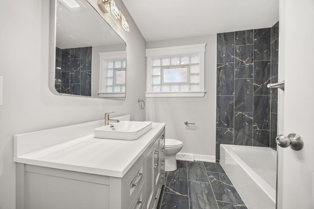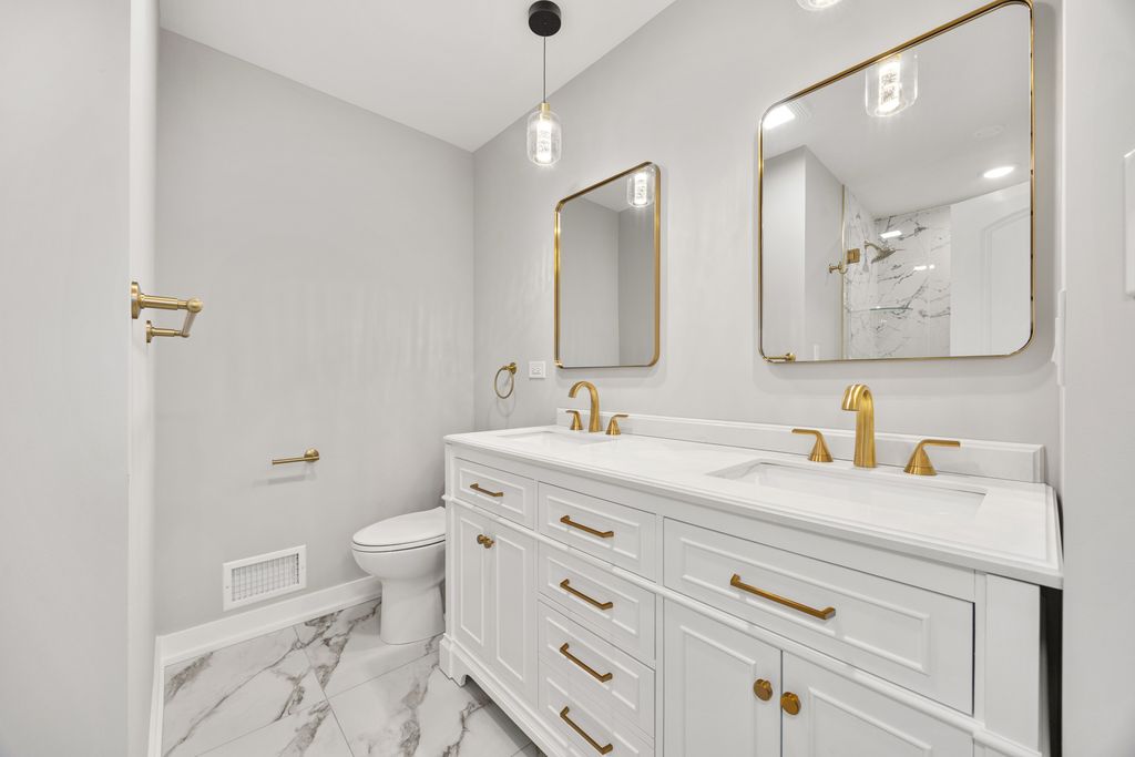 Fully renovated from top to bottom in 2025, this stunning 3-bedroom, 3-full-bath home offers the perfect blend of modern luxury and thoughtful design. Every major system has been upgraded - including brand-new electrical, plumbing, hot water heater, furnace and electrical service to the home - giving you peace of mind for years to come. The main level features beautiful hardwood floors accented with artistic design details that add character throughout the home. The completely redesigned kitchen showcases quartz countertops, stainless steel appliances, and a clean, modern aesthetic that flows seamlessly into the living space. The primary suite is a true retreat, complete with its own private bathroom. Downstairs, the finished lower level offers a massive living area with an electric fireplace, along with the third bedroom and a full bath - ideal for guests, extended living, or a private home office setup. Outside, you'll find a brand-new driveway, a 2-car detached garage, and a partially new backyard fence. For added security and convenience, the home is equipped with electric-operated metal window shutters. This is a rare opportunity to own a completely rehabbed home where no detail was overlooked - move-in ready and designed for modern living.