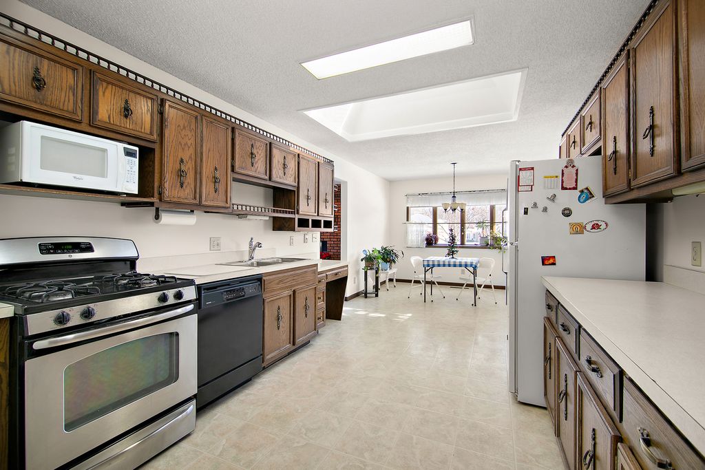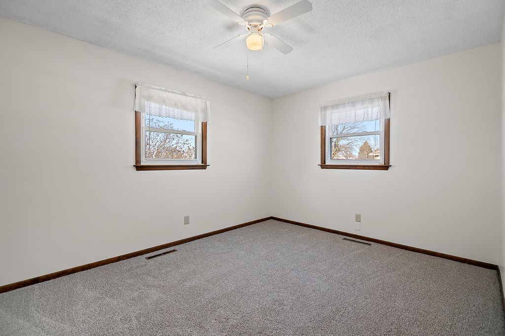 Immaculate and meticulously maintained ranch situated on a desirable corner lot in Wright Estates Subdivision. Step into the bright living room featuring fresh paint (2025), new carpet (2025), a cozy brick fireplace, and custom built-in shelving. The light-filled kitchen offers skylights, solid wood cabinetry, a stainless steel stove, and dedicated space for a dining table. 3 bedrooms are freshly painted with new carpet (2025). 2 full bathrooms include stand-up showers. The full, unfinished walk-out basement boasts tall ceilings and abundant storage, complete with a whole-house vacuum system, workshop room, and wine cellar. One of the standout features is the massive 35x29 3-4 car, pole-barn-style garage with an oversized double RV overhead door and exceptional storage capacity. House Roof within 10 Years. Enjoy outdoor living in the large, fully fenced backyard with a garden area and beautiful brick paver patio. A must-see property!