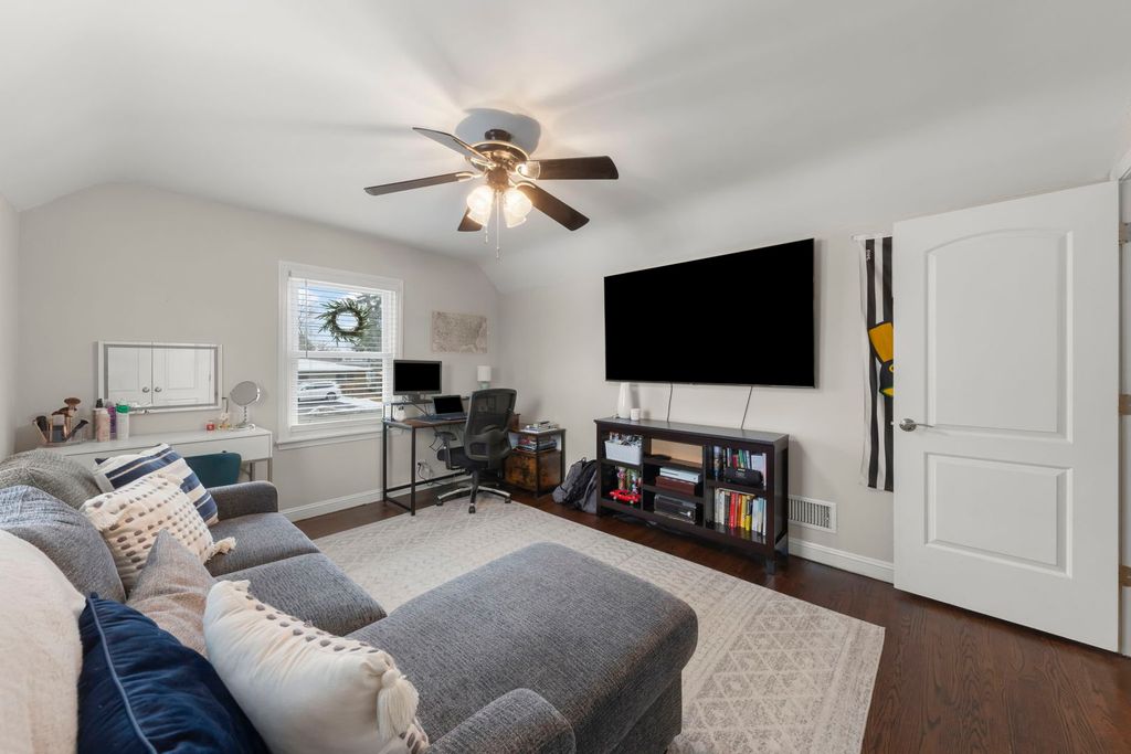 Welcome to the move-in ready home you've been waiting for in the heart of Lombard! This inviting split level offers 3 bedrooms, 1.5 bathrooms, and blends vintage character with thoughtful modern updates throughout. Upon entry, you'll notice beautiful hardwood floors and abundant natural light streaming through the bay window. The inviting living room features stunning built-ins, perfect for showcasing your favorite decor. A separate dining room offers plenty of space for a large table and is ideal for entertaining and everyday gatherings. Just around the corner, the updated kitchen highlights white cabinetry, quartz countertops, a tile backsplash, and stainless steel appliances. Head upstairs and you'll find two bedrooms and a charming full bathroom. The top level offers a private primary bedroom retreat with excellent closet space! On the lower level, you'll find a convenient laundry area and a half bathroom, perfect for guests. The partially finished basement provides flexible space for entertaining, a home gym, or a work from home setup, along with ample storage space. Step outside to discover the true gem of the property, a fully fenced backyard that feels like a private oasis! The multi tiered outdoor space features a freshly renovated wood deck, a spacious brick patio, and a storage shed, making it an entertainer's dream! Major updates include newer vinyl windows, refinished hardwood floors, fresh interior paint, deck renovations, and more. Your new home is ideally located near Madison Elementary School, the Metra, Downtown Lombard, and the Helen Plum Library. This home also offers prime seating for the annual Lombard Lilac Parade. Welcome home!