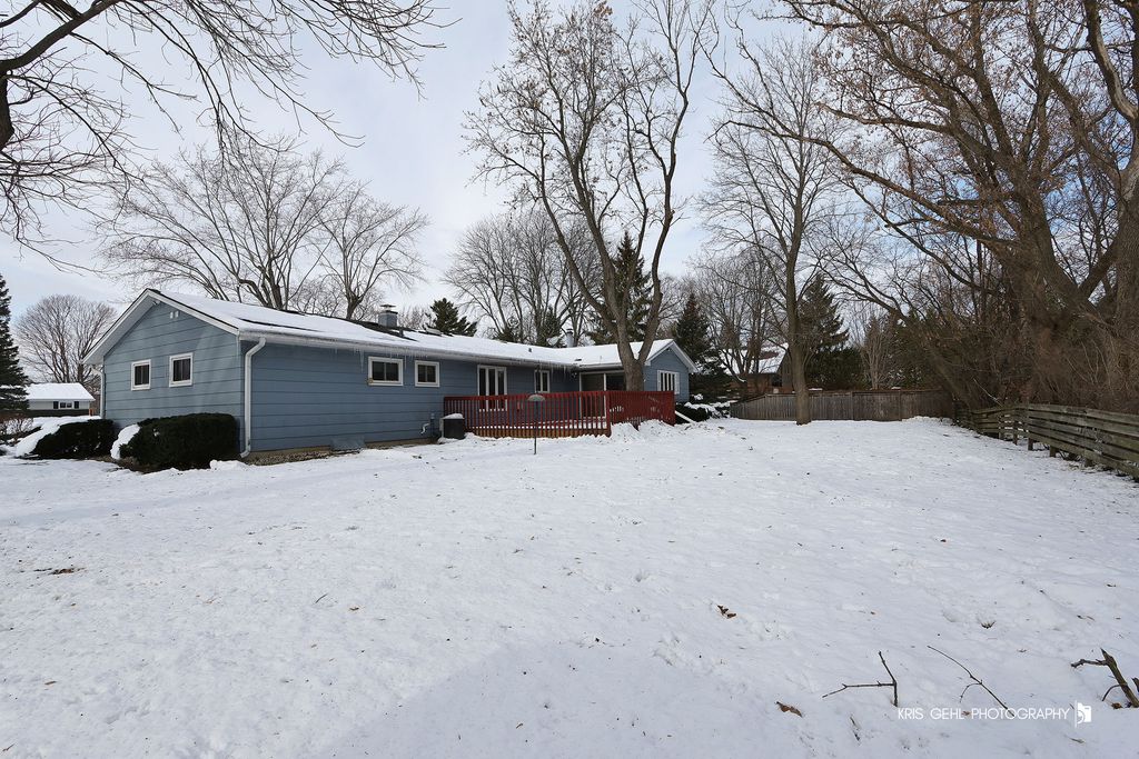 Imagine stepping into a home that feels like a cherished moment in time - a space where CRAFTSMANSHIP, COMFORT, and CHARACTER come together. This SOLID 1,728sf CUSTOM-BUILT 3 Bed, 2 Bath RANCH is TUCKED AWAY on a DEAD-END STREET with a CUL-DE-SAC in the desirable BEACH CREEK SUBDIVISION, offering PRIVACY, SPACE and unbeatable CONVENIENCE. From the moment you enter, you're greeted by a sense of NOSTALGIA and warmth. This home embraces its authentic RETRO CHARM, offering a UNIQUE opportunity to enjoy VINTAGE Character today or reimagine it with modern updates tomorrow. With NEWER WINDOWS throughout, NATURAL LIGHT pours in, highlighting the home's SPACIOUS LAYOUT and open flow between the Living Room with gorgeous PICTURE WINDOW and FORMAL DINING Room. The Expansive Main-Floor FAMILY Room features rich wood paneling and a Stunning BRICK, Wood-Burning FIREPLACE - a Perfect GATHERING Space. An OVERSIZED Glass Sliding Door opens to huge WOODEN DECK, overlooks the Beautifully Landscaped .45-Acre MATURE LOT, complete with Nature Views, PARTIAL FENCE, and STORAGE SHED - ideal for RELAXING, ENTERTAINING, and OUTDOOR ENJOYMENT. The Kitchen OPENS SEAMLESSLY to the Family Room and retains its classic charm with AMPLE CABINETRY and FUNCTIONAL LAYOUT, offering an EXCELLENT FOUNDATION for future personalization. Throughout, you'll find SPACIOUS ROOMS, a COMFORTABLE ranch-style FLOOR PLAN, and thoughtful details that reflect the quality of its custom construction. The Primary Bedroom includes a PRIVATE Bath with GRAB Bars, along with Two additional GENEROUSLY SIZED Bedrooms and a Hallway Bath. A PARTIALLY FINISHED Basement with EGRESS WINDOW adds valuable SPACE for RECREATION, HOBBIES and STORAGE. Attached 2-CAR GARAGE, Municipal Water and Sewer. Strong Bones and Solid Construction - a rare opportunity to own a Well-Built home in a prime neighborhood. Whether you embrace its retro personality or modernize it over time, this EXCEPTIONAL home offers endless possibilities. Walking distance to Local Parks, Schools, Robert McClory Bike Path & Walking Trail. Minutes to Thunderhawk Golf Course, Metra Train and Local Shops. Easy access to I-94, perfectly positioned between MILWAUKEE & CHICAGO